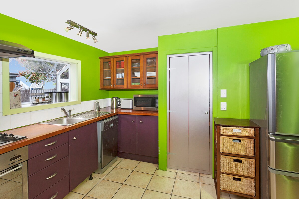 This three-bedroom cottage features polished concrete floors in the open plan kitchen, living and dining area. The bedrooms are fully carpeted and feature views of the mountains and sea. Two of the bedrooms have access to the terrace. The fully tiled bathroom features a claw foot bath, shower, toilet, and two vanities. The fully-equipped kitchen includes a dishwasher and there is an exterior laundry with a washing machine and dryer. The property is surrounded by the historic Maori Pa.