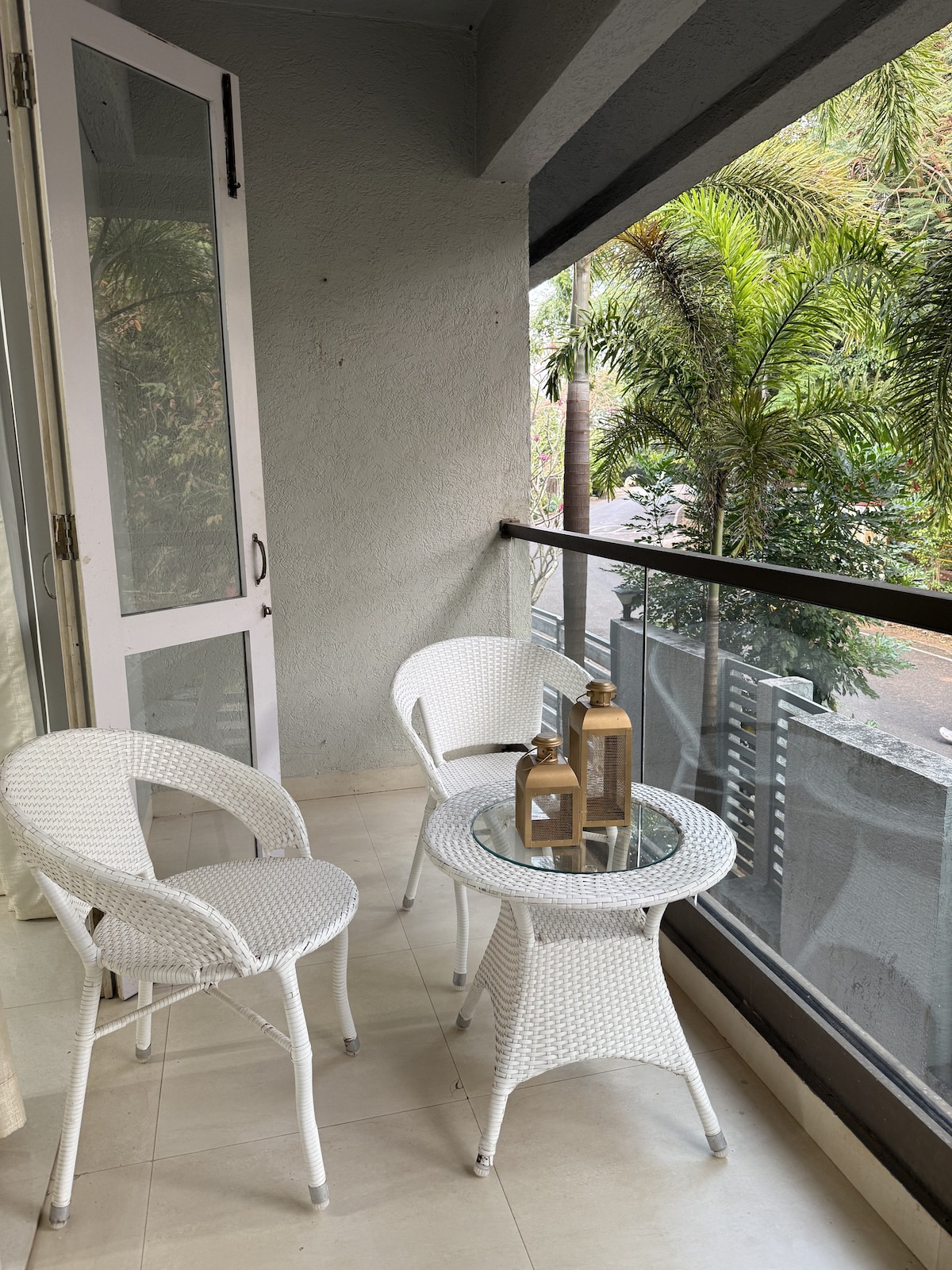 A hidden gem tucked away in Panjim's poshest zip code. Our 2BHK penthouse has a private terrace and is a short walk from Miramar beach. A Goan sanctuary surrounded by greenery; the open-plan, sprawling living room transforms into a chic space after sunset with designer ambient lighting. The famous promenade, grocery stores, and cafes are just a stroll away. Fontainhas & casinos are a short drive away. Enjoy high-speed WiFi if you’re working from home. PS: Look for peacocks in the morning!