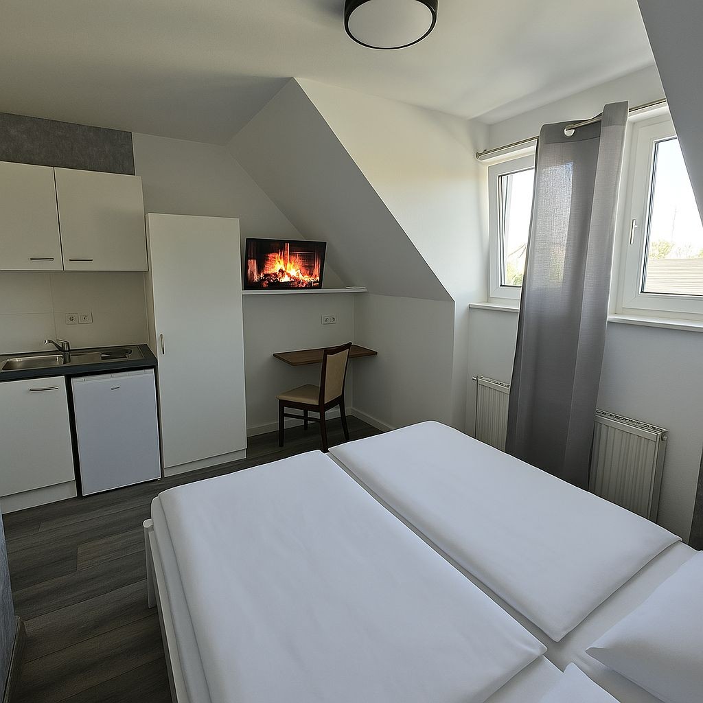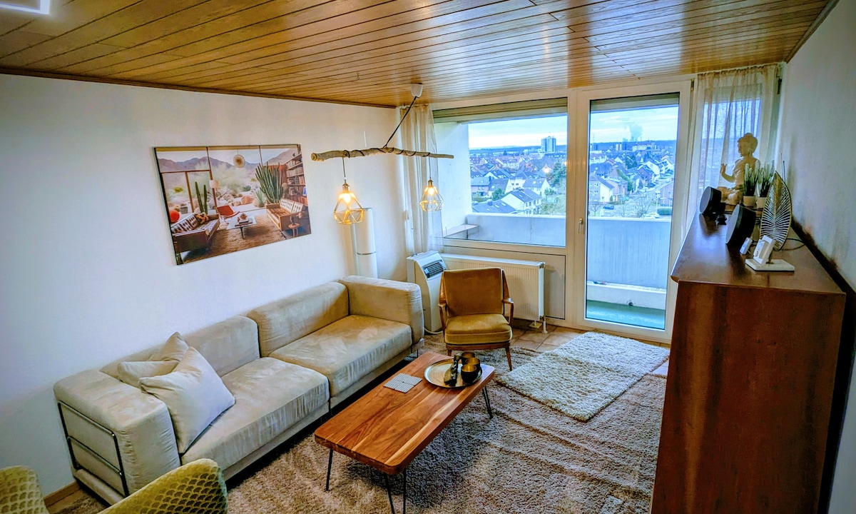 Experience your home away from home: Enjoy a beautiful penthouse apartment with panoramic views, just 10 minutes from Dormagen train station. Relax in the lovingly furnished two-room apartment with a double bed, a single bed, and a sofa bed. Parking is available directly at the building, and monthly cleaning is included. Significant discounts are offered for stays of one week or more. Ideal for business trips or private getaways – you'll feel instantly welcome and can simply arrive and enjoy.