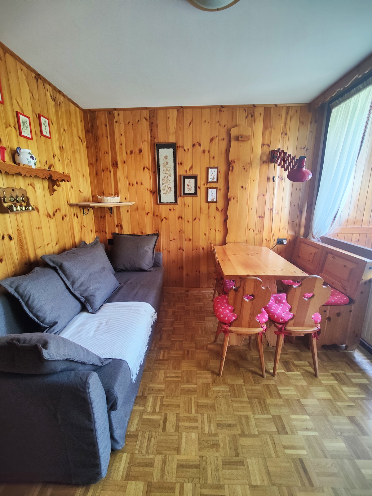 Studio apartment for up to 4 guests (double bed and sofa bed in the same space). Kitchen with dishes, induction hob, traditional oven and microwave, refrigerator. Bathroom with shower and washing machine Bed linens and towels are provided. In the historic center of Piatta Valdisotto, 2 km from the center of Bormio towards Bormio 2000. NB Tourist tax to be paid on site €1.20 x person x night. CIR: 014072-LNI-00018