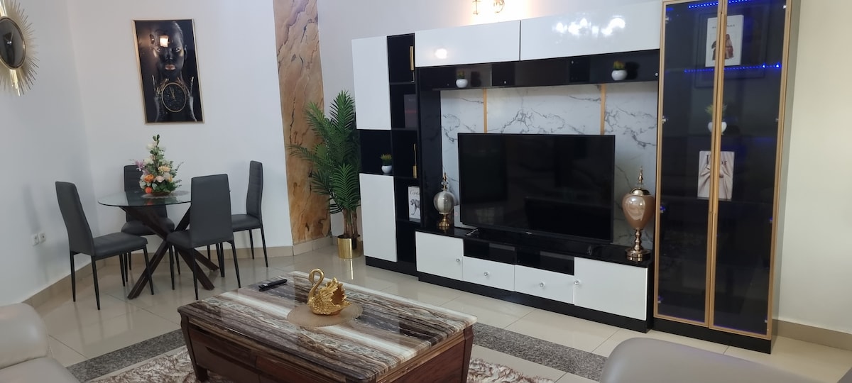📌Features 📌. 🛋️01 High-end air-conditioned living room with dining room 🛏️02 well-equipped and air-conditioned bedrooms. 🚿 02 bathrooms. 🧑🍳01 equipped kitchen (Refrigerator, built-in stove, microwave, blender, washing machine and others) ✨01 balcony with an epic view of the city 🛜Wifi 📺Canal + (Smart TV Samsung 2024 latest generation). 🧹Cleaning service every 2 days 🚗Secure parking with 24/7 security guard 🔋Generator. ♨️Hot