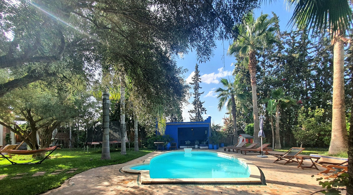 A peaceful family escape just 20 minutes from Marrakech. Tucked away in nature, this charming villa offers complete privacy, no overlooking, and a heated pool that everyone can enjoy year-round. It’s the perfect place for families to relax, play, and spend quality time together surrounded by an amazing landscape. ✔ Daily housekeeping and chef services ✔ 3 bedrooms plus Hammam ✔ Comfortable living area ✔ Fully equipped kitchen ✔ Beautiful garden with pool, pergola, and lawn ✔ Private parking