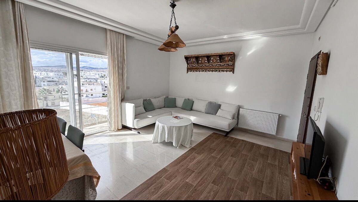 We are delighted to host you in our spacious and air-conditioned home. The apartment can accommodate up to 3 people. Shops and coffee at the foot of the residence. Live an authentic Tunisian experience to share with couples, friends, and family. Book now if you want to be in a spacious and peaceful accommodation 20 minutes from Tunis. Free parking in front of the residence, frequent taxi pass. Train station 10 min to the medina.