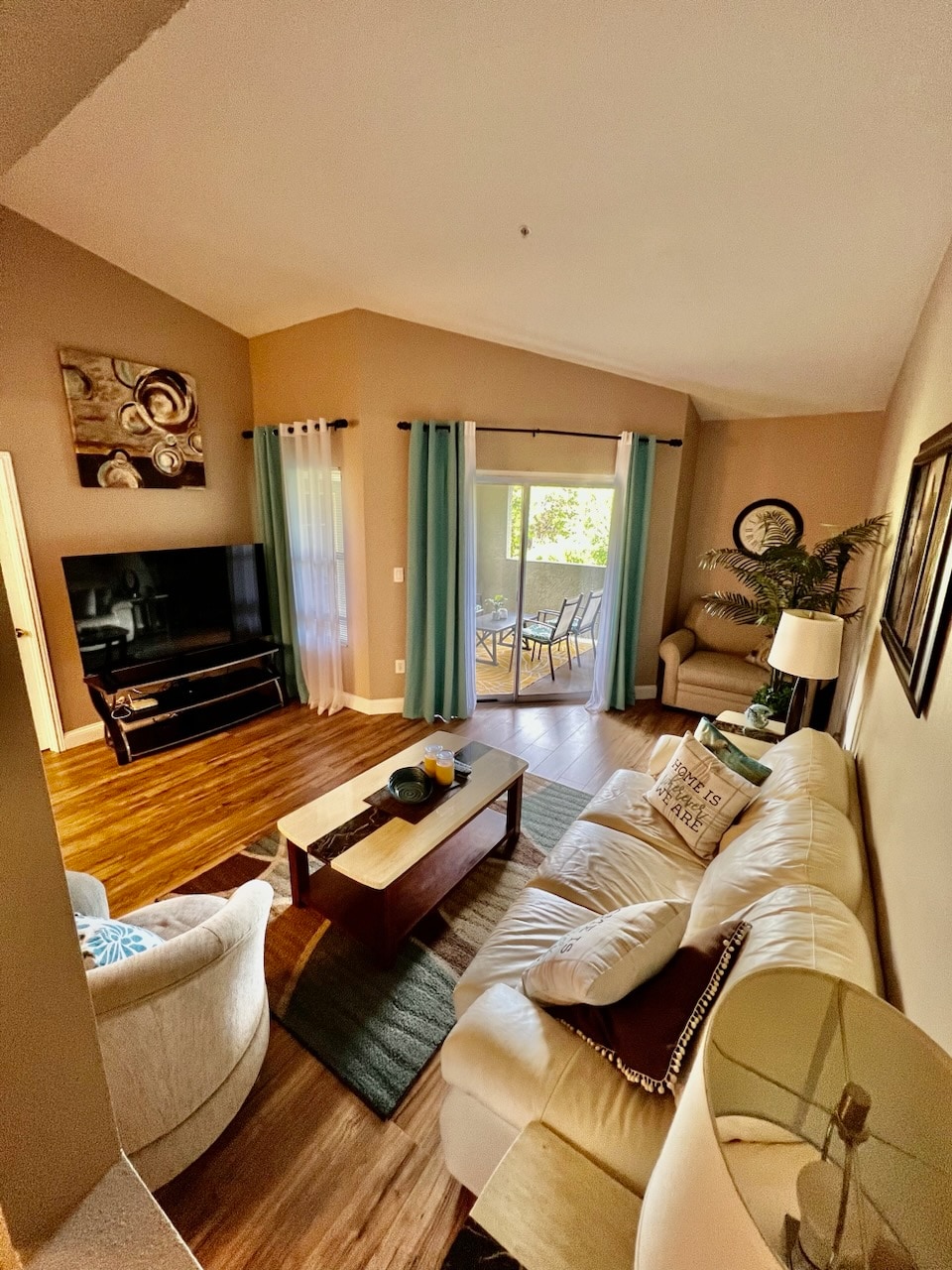 Kick back and relax in this calm, stylish space.Minutes away from Clearwater Famous Beach.You will be pleased with high ceilings and open floor plan.King size bed in the Bedroom with balcony and 55" smart Tv. Walk-in closet and updated bathroom. Spacious covered patio style balcony. Full-size washer and dryer inside the unit. Fully updated and equipped kitchen. Specious living room with a sleeper sofa that can sleep two quests and 65"smart Tv. Heated outdoor pool, gym, fast wifi internet, cable