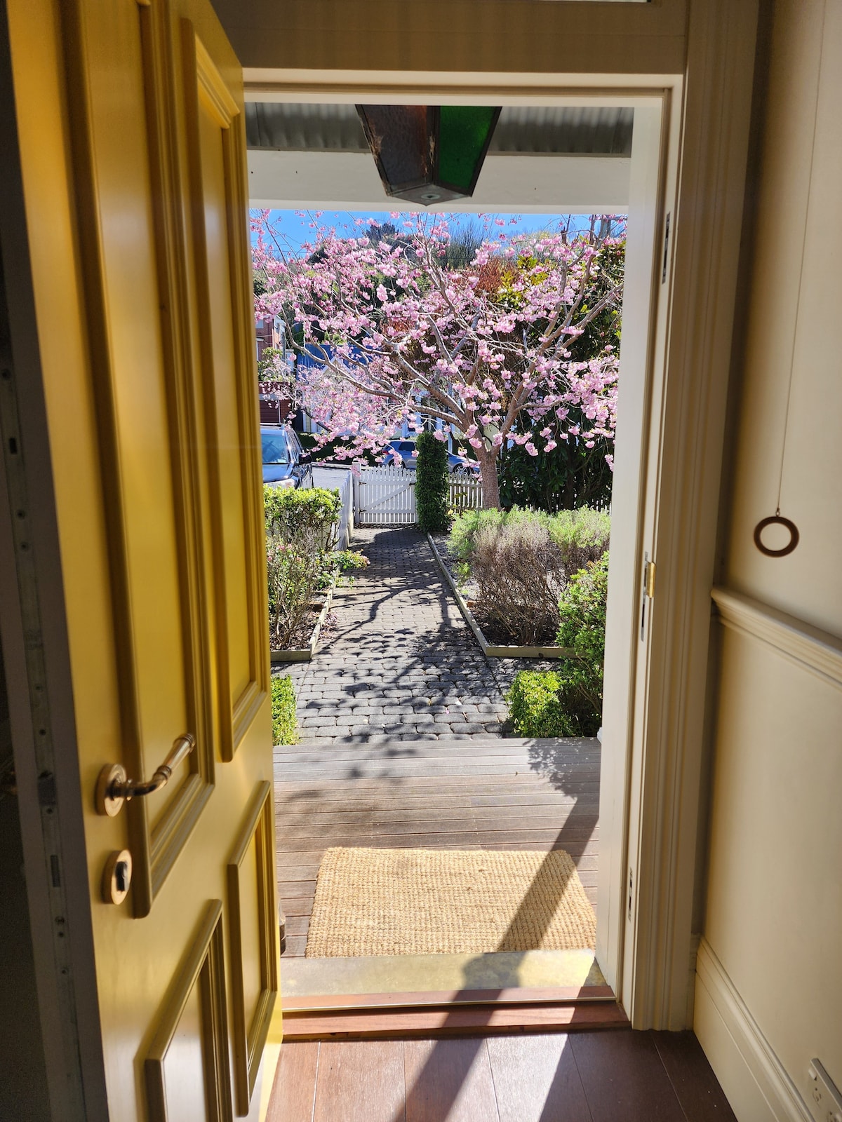 Stay at 'Seven' a cute retro apartment in my cottage garden. Upstairs there's a romantic loft style bedroom and small sitting area with views of the harbour. French doors lead you to your private floriferous roof garden. Downstairs provides kitchen and bathroom. Access between upstairs and downstairs is via the deck and outdoor stairs, so not suitable for those with mobility issues. If you enjoy colour, comfort and quirky surrounds stay here.