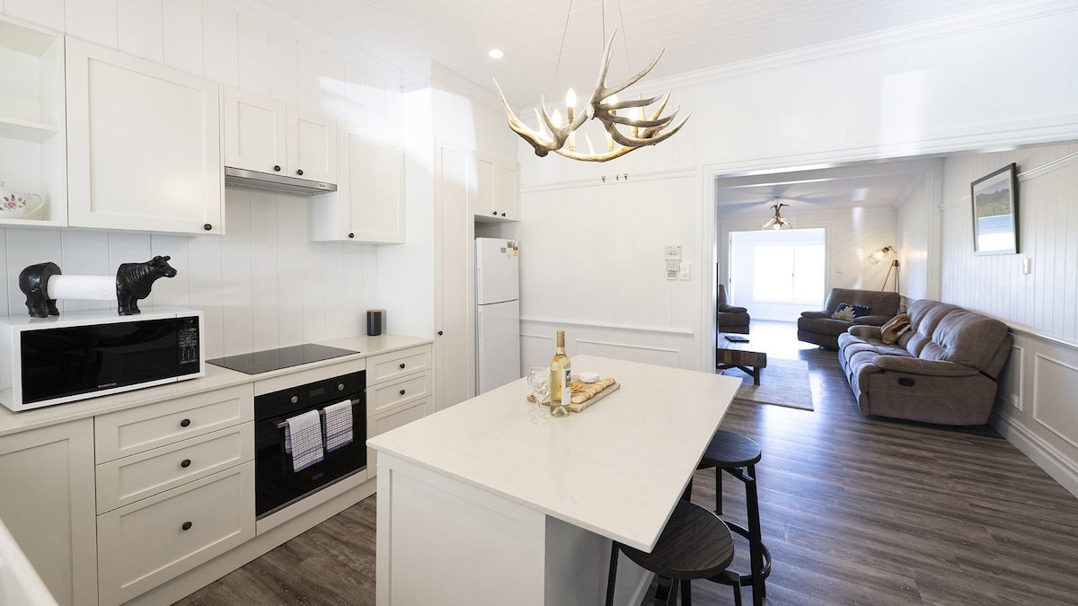 If you are ready to unwind, relax and recharge in a beautiful, intimate riverside setting, St Helena Dairy awaits. Rescued from its former days as cow bales, now offering complete comfort and luxury. Immerse yourself in the outdoor bath underneath the Moreton Bay fig tree. Get cosy on the comfy lounges in front of the log fire. BBQ on the deck, or picnic on the hillside. Wander down to the river for a dip in the crisp water, or go adventuring in the National Park. Sorry No Pets.