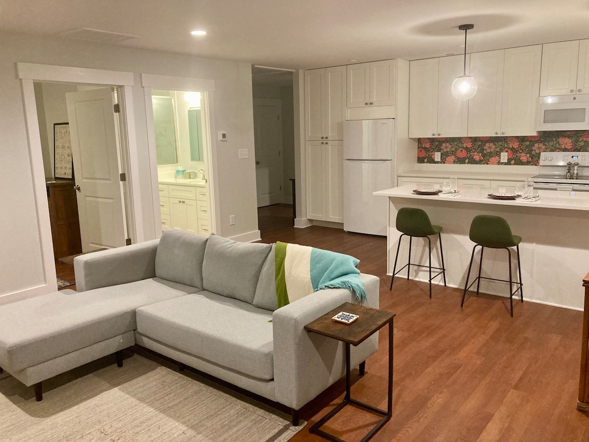 You'll have plenty of space in this beautiful, sun-soaked, fully-stocked, 1-bedroom guest house. Literally just steps from Duke's East Campus, you have easy access to everything. It's a short walk to two grocery stores (including Whole Foods), restaurants, shops, and a popular walking/jogging loop, and just a mile and a half to downtown or Duke hospital. Or stay in and lounge on the massive deck, cook a meal in the full-sized kitchen, or stream your favorite shows in this brand-new space.