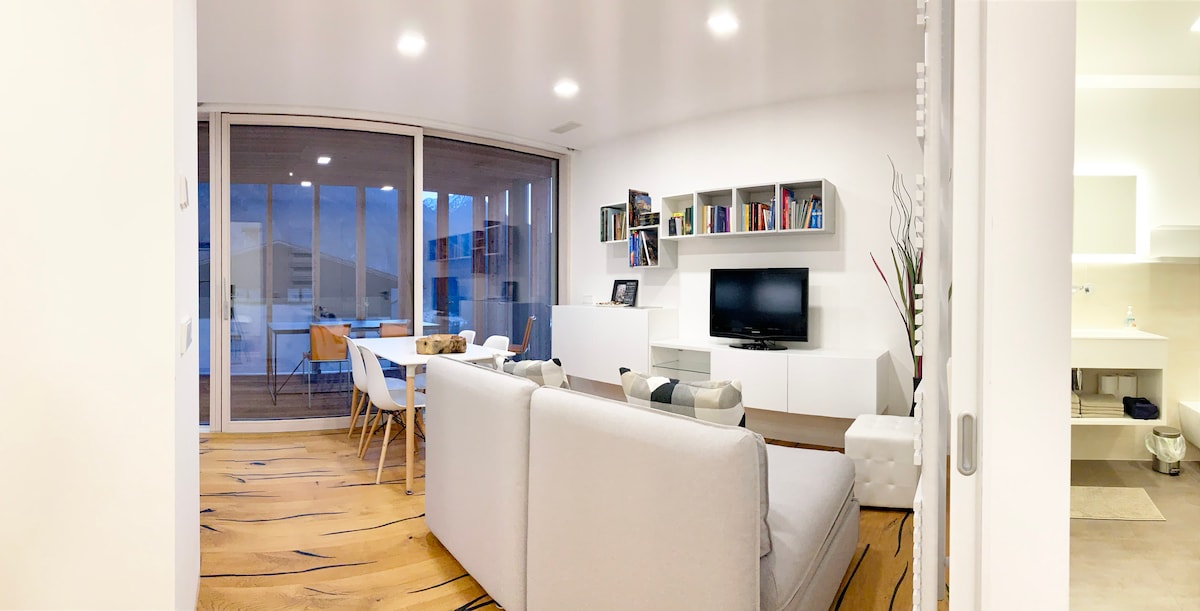 L'appartamento moderno e accogliente con parcheggio privato recintato gratuito, garage per bici e attrezzatura e ampio giardino con bbq e gazebo. Situato al 2° piano con ingresso autonomo, camera con 3 posti letto, open-space con cucina e soggiorno con divano letto matrimoniale, bagno finestrato con doccia walk-in e ampio balcone vista montagne. Attrezzato di lavastoviglie, lavatrice, macchina Nespresso, Wi-Fi e Smart TV. Ospita fino a 5 persone.
