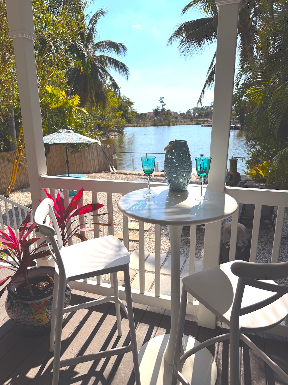 Welcome to your own, private waterfront home close to restaurants, coffee shops, parks and Naples beaches! This perfect tropical cottage for two comes with a stunning view of a natural lagoon. Fish and kayak right from the back yard! Two Kayaks & bikes provided! Lush, tropical setting. Relax on the back porch where there's always a breeze! Bike over to the Botanical Gardens, Pickle Ball courts or shops near by! Short drive to famous 5th Ave & Naples beaches! Lots of fun things to do near you!