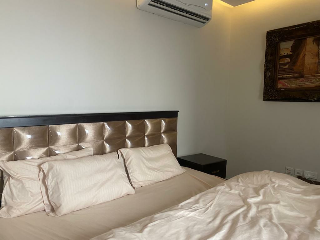 Apartment with 8*8 hall containing an 85-inch Samsung screen in addition to Netflix + Shahid Net + 5G Wi-Fi + integrated coffee corner + fully equipped kitchen + integrated 4*8 master bedroom + private parking for the apartment in the basement and outdoor parking.