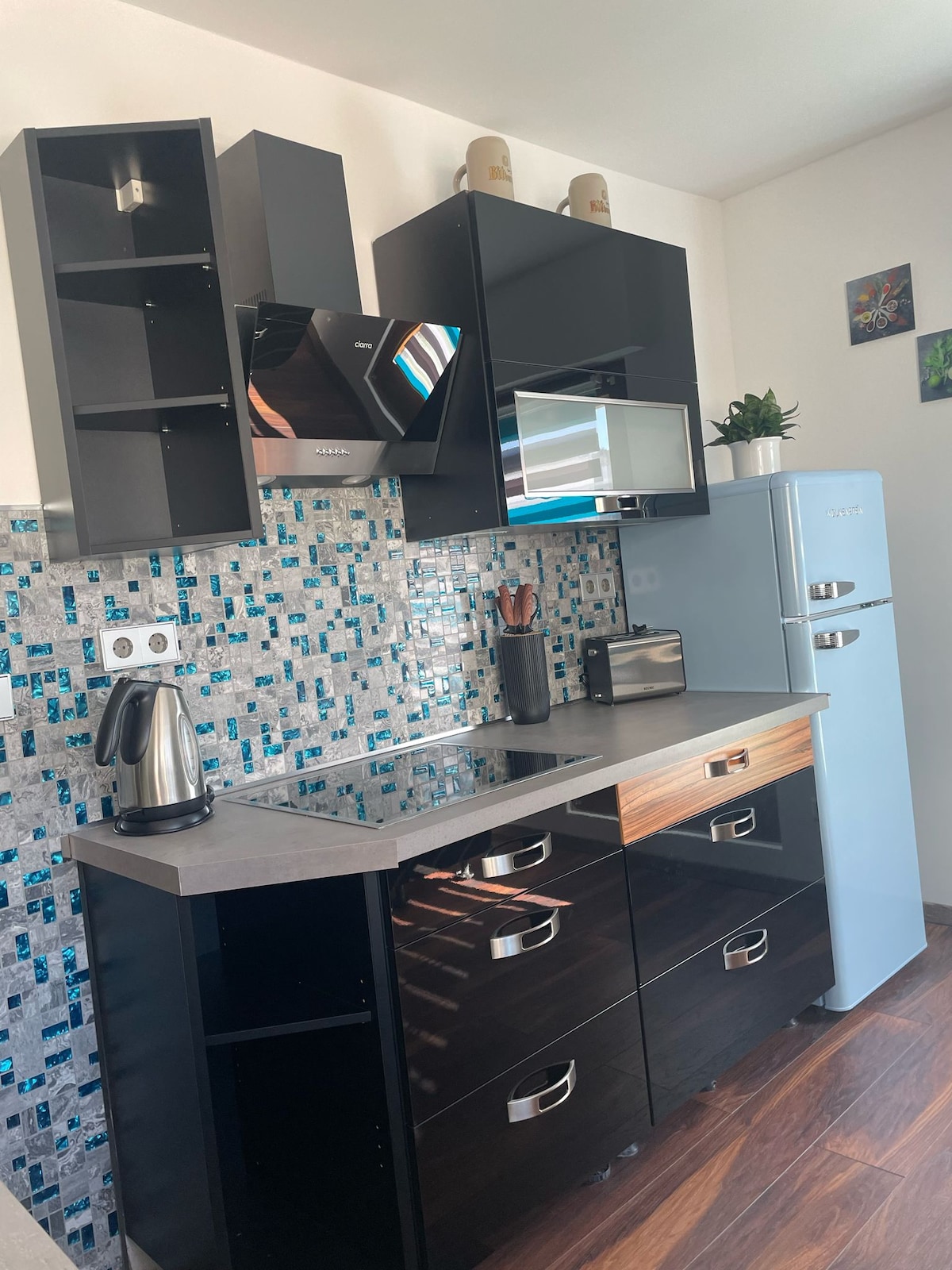 Beautiful two-room apartment (about 60 m²), in the beautiful Mauer near Heidelberg. The apartment has a large living room with a sitting area, a TV, as well as a dining area with an open kitchen. The kitchen is of very high quality & modern design. In the hallway to the bedroom there is also a closet to store clothes. The bedroom consists of a double bed, as well as a closet. Next to the apartment there is a garden (lawn) which can be used.