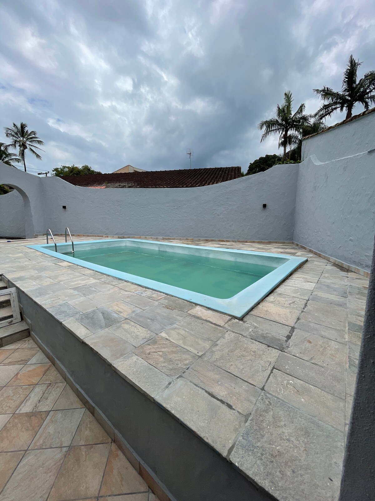 Seasonal house 150m from Pernambuco Beach (Guarujá). Finely decorated, it offers 3 large en-suites with air-conditioning, a living room with double ceiling height, a mezzanine with a fireplace and a sofa bed. Full kitchen, toilet and tropical outdoor bathroom by the pool. Leisure area with pool, lawn, barbecue and wood oven. Garage for 2 cars. Next to Pão de Açúcar, Shopping Jequitimar, PM company 400m from the house.