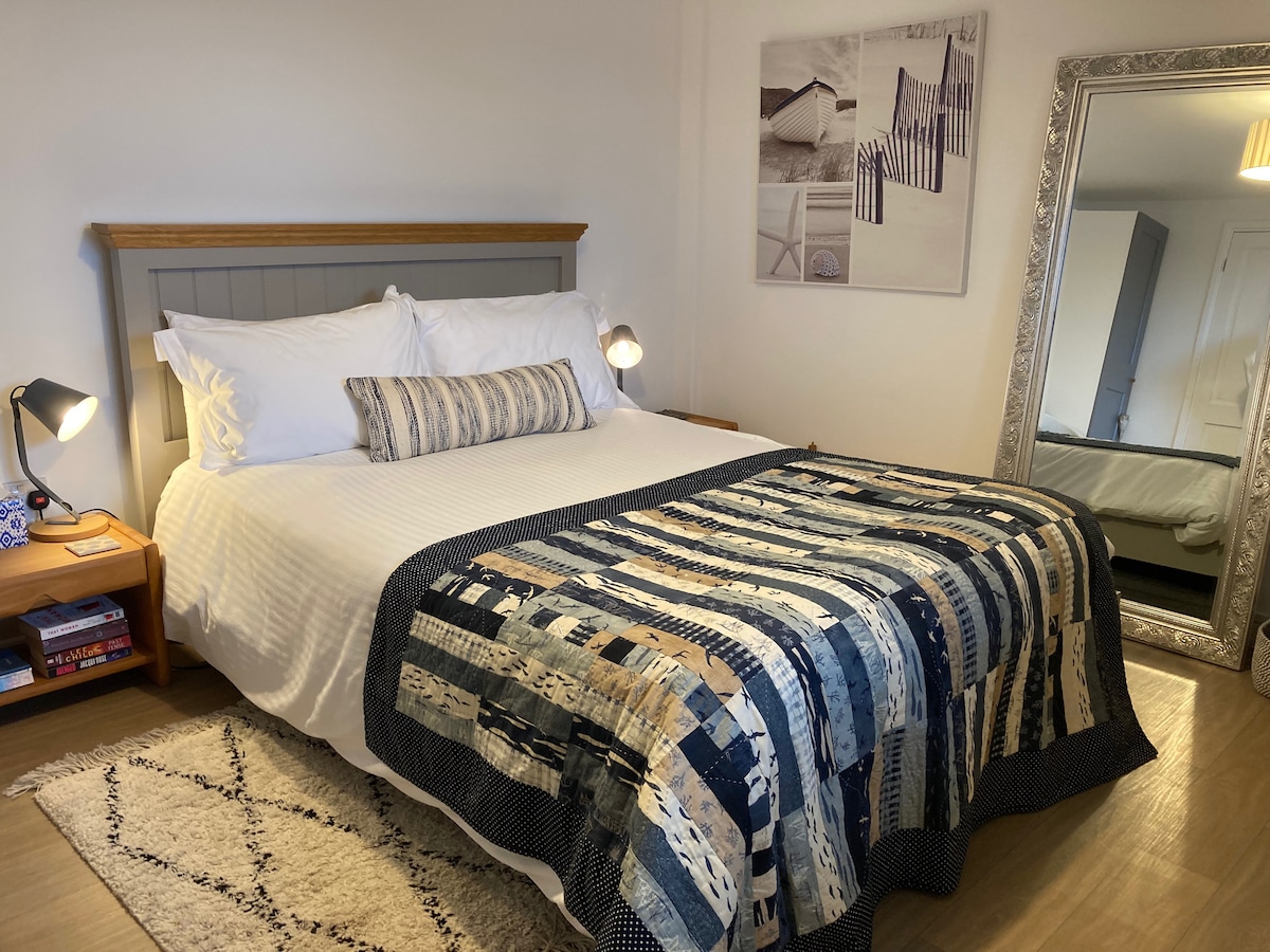 A lovely contemporary studio first-floor apartment, close to the centre of Wadebridge and famous Camel Trail. We are in a private lane, with off-road parking. A very comfortable space with a king-size bed and ensuite bathroom with a luxury walk-in shower. Your own balcony facing S.W. Leather sofa to watch Smart tv with Netflix/Amazon Prime included that you can watch from the sofa or spin to watch in bed. Kitchen area, toaster, kettle, fridge, microwave and cafetiere.