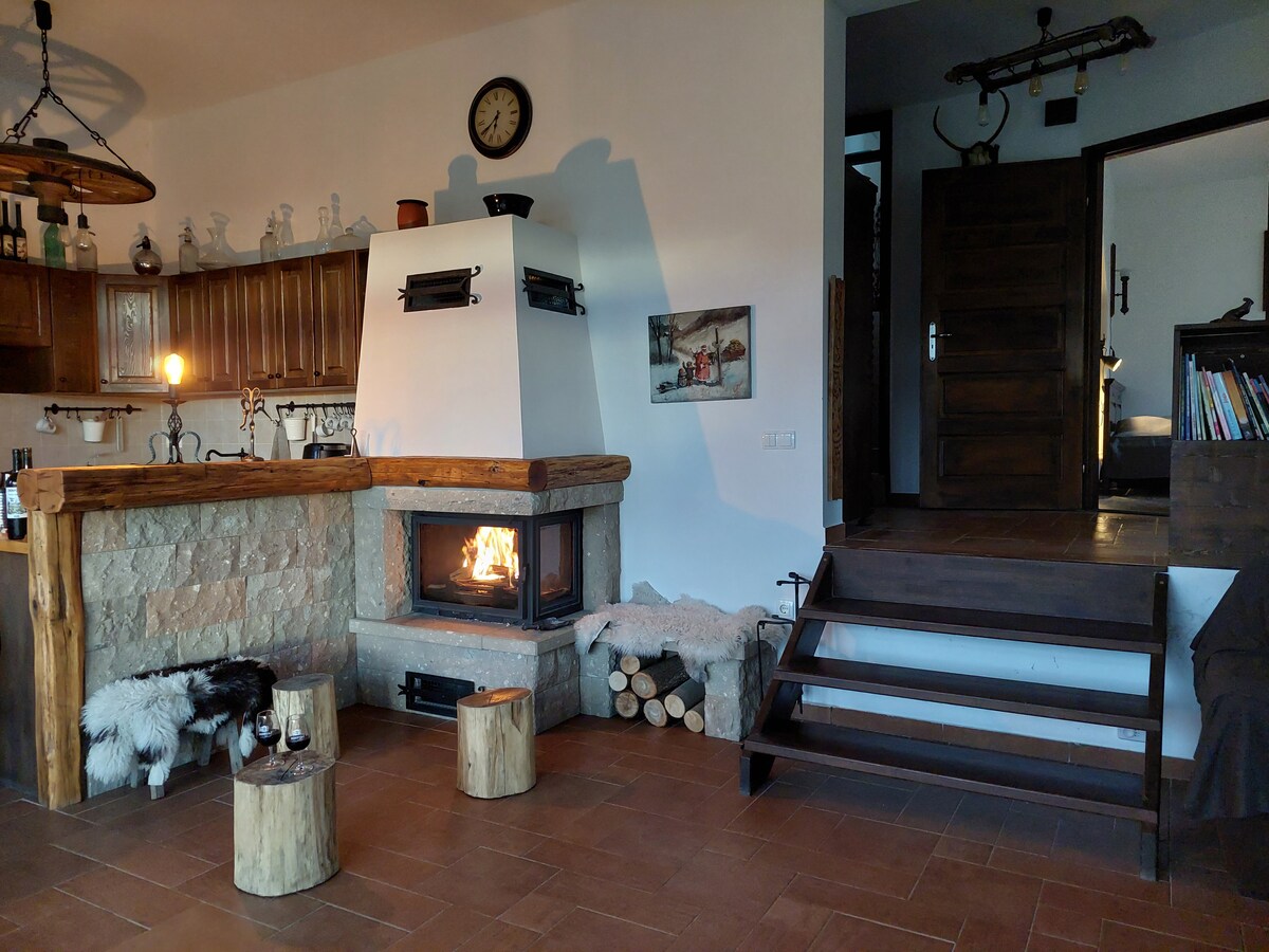 Our mountain sauna apartment was completed in the spring of 2021. It has a completely separate entrance. Its floor area is 28 m2. A harmonious environment designed for the comfortable rest of 2 people. It has a PANORAMIC INFRARED SAUNA, a fully equipped kitchen, a dining room and a sleeping area in one room. DIGI full channel distribution 63 cm LCD TV. + NETFLIX Bathroom with large shower cabin, separate room toilet. Panoramic garden space. Bacon roasting, cauldron cooking, parasol, firewood.