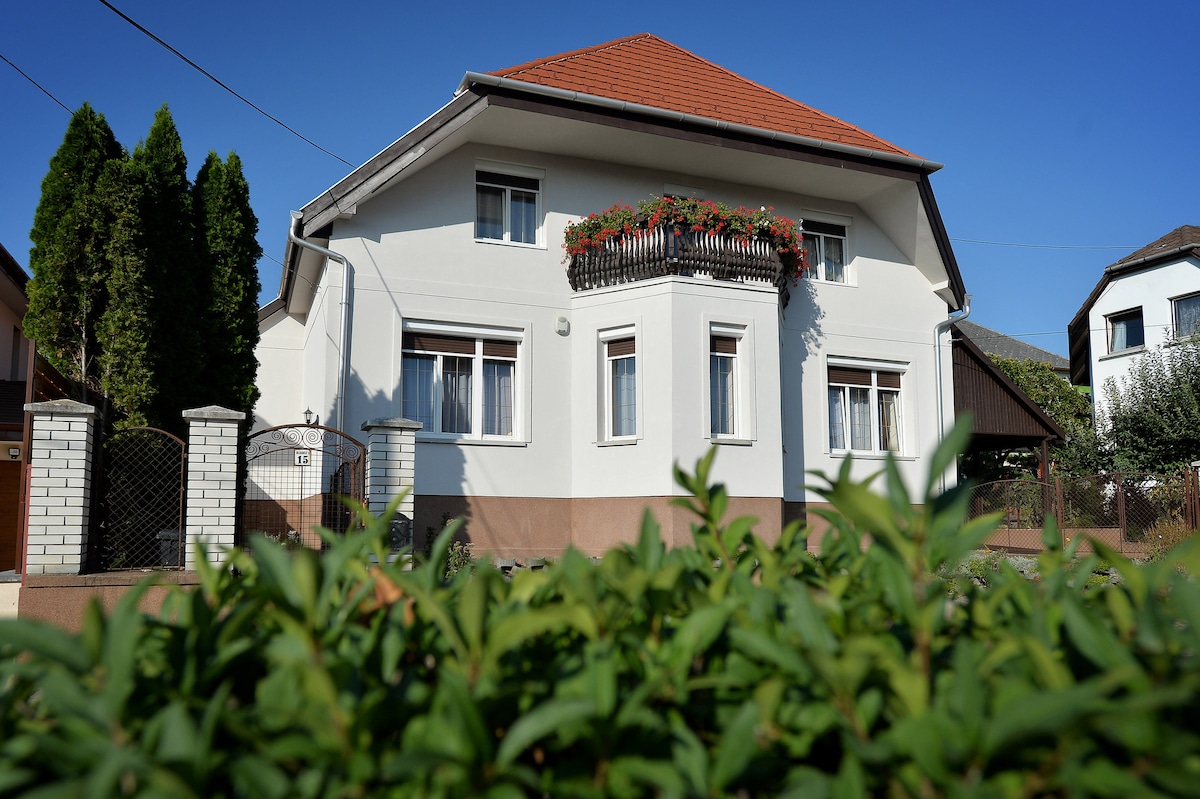 The most ideal choice for families Our guesthouse is located just a 15-minute walk from the historical center of Eger and the Szépasszonyvölgy. The guesthouse has a separate entrance, which is 100 m2, living room, 3 bedrooms, bathroom with corner shower and washing machine. Fully-equipped kitchen (dishwasher, fridge-freezer). The guest house has free Wi-Fi and air conditioning for your comfort. The garden has a covered terrace, garden furniture, barbecue, trampoline.