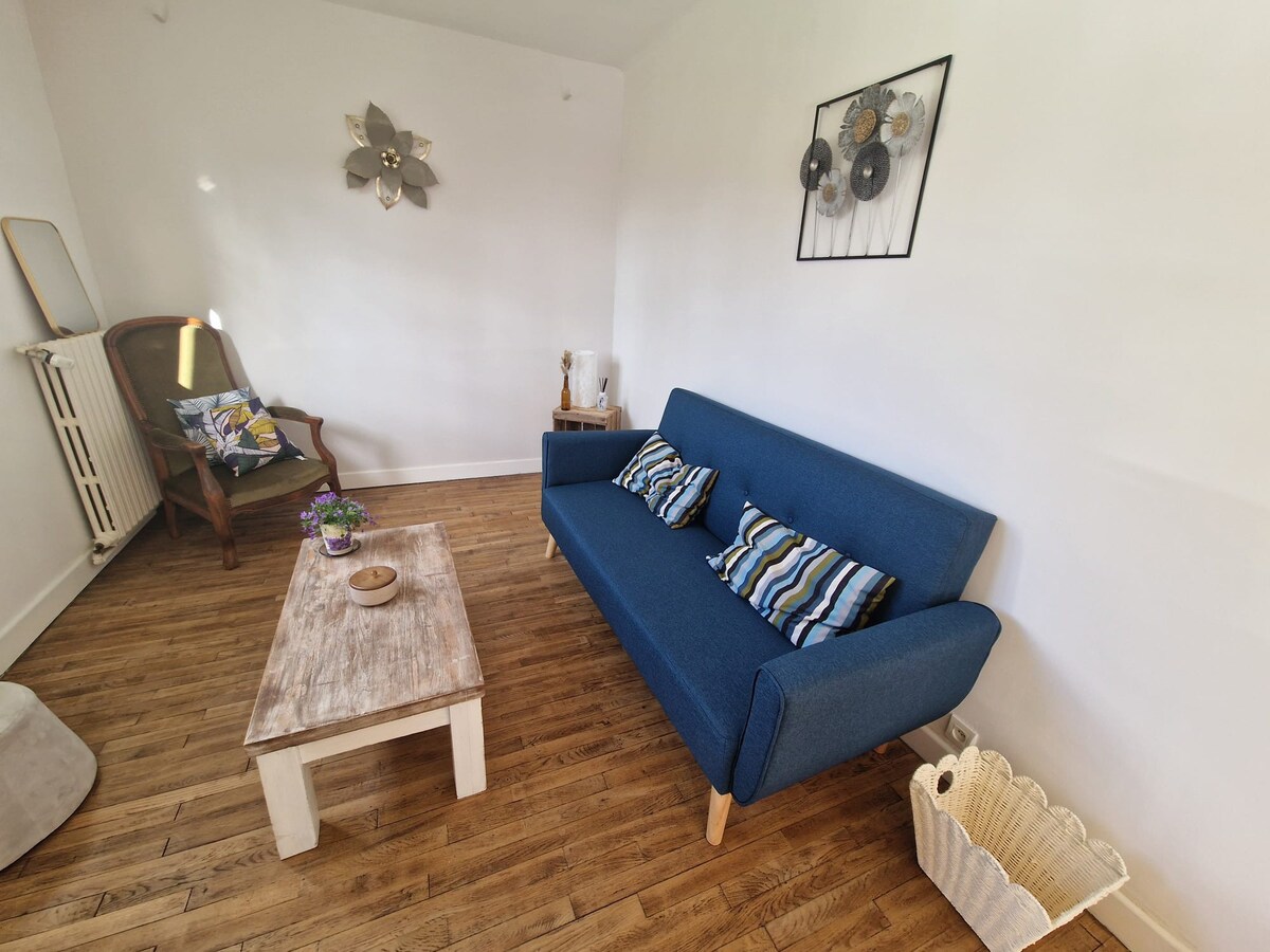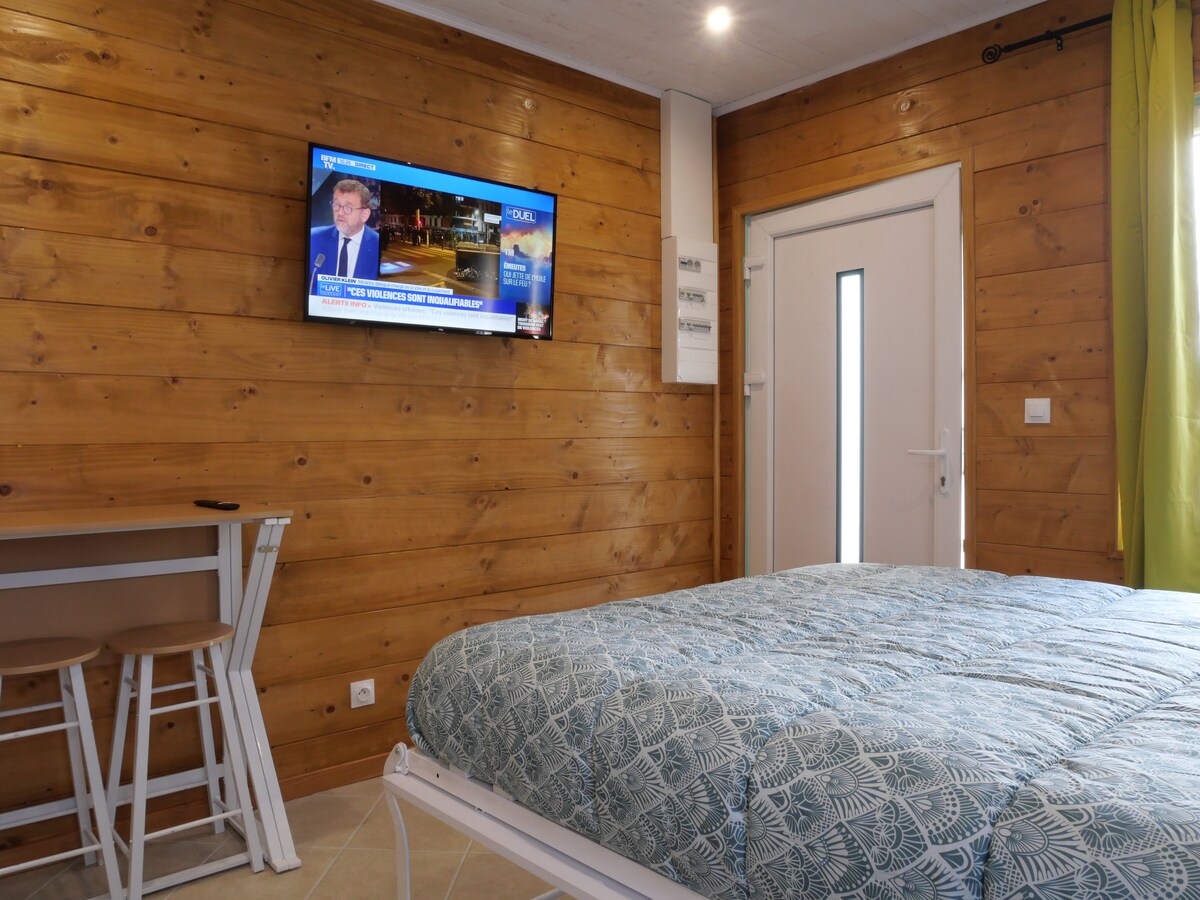 Pleasant studio of approximately 20 m², with a separate bathroom and a separate toilet. This studio is located on the ground floor of our house but it has a completely independent entrance. It consists of a main room with a 140 bed (new quality bedding), a fully equipped kitchen area, a desk area, an armchair and a dressing room. There is also a separate bathroom (shower and towel dryer), a separate toilet and a small hall. Free private parking.
