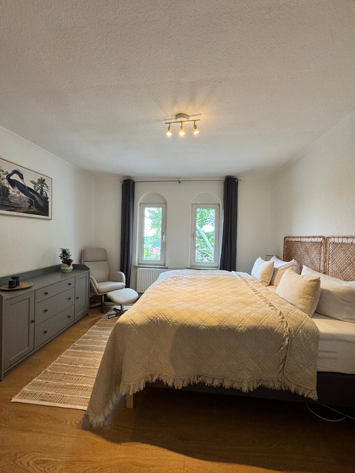 Our guest house is the former stable building of an old town villa (BJ 1908) in the heart of Heide. It was completed in October 2019 with great attention to detail. The two bedrooms on the first floor reminded us as sailors directly of cozy bunks. They can be reached via a steeper staircase. On the ground floor you will find a pantry kitchen, a bathroom and a dining room. There is a separate entrance and a private terrace.