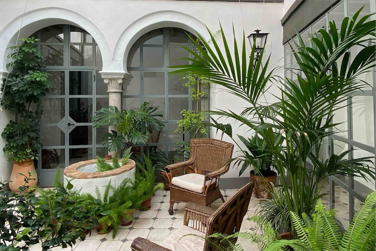 Live a unique experience by staying in a traditional house with neighbors. Enjoy its courtyard, flowers, and vintage decor with all the amenities. The house has 4 independent tourist apartments, sharing a patio and terrace with the rest of the guests. Perfect for couples with or without children. Very quiet area, very close to the Palacio de Viana and the route of the Fernandine Churches.