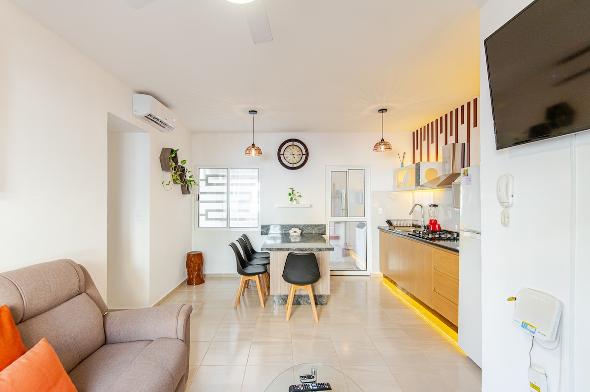 Casa Sol is a stunning, designer-furnished 2BR/2BA apartment in the luxury AWA Residences. Enjoy resort-style amenities including landscaped pools, a rooftop infinity pool, swim-up bar, jacuzzis, hammocks, gym, yoga studio, co-working space, 24/7 security, Kids Club, and playground. Ideally located in Playacar, just a short walk to the beach, 5th Avenue, shops, restaurants, and attractions. Perfect for families, couples, or friends seeking comfort and style.