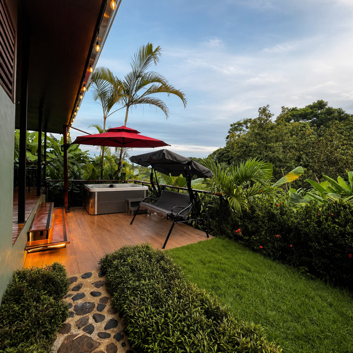 Escape to a private retreat surrounded by nature, perfect for resting and unwinding near La Fortuna. At Villa Brisa Verde, you can enjoy a private jacuzzi, outdoor shower, terrace with lush green views, air conditioning, a fully equipped kitchen, and the peace of a tropical setting. We are just 15 minutes from downtown La Fortuna, making this a great place to combine privacy, relaxation, and adventure.