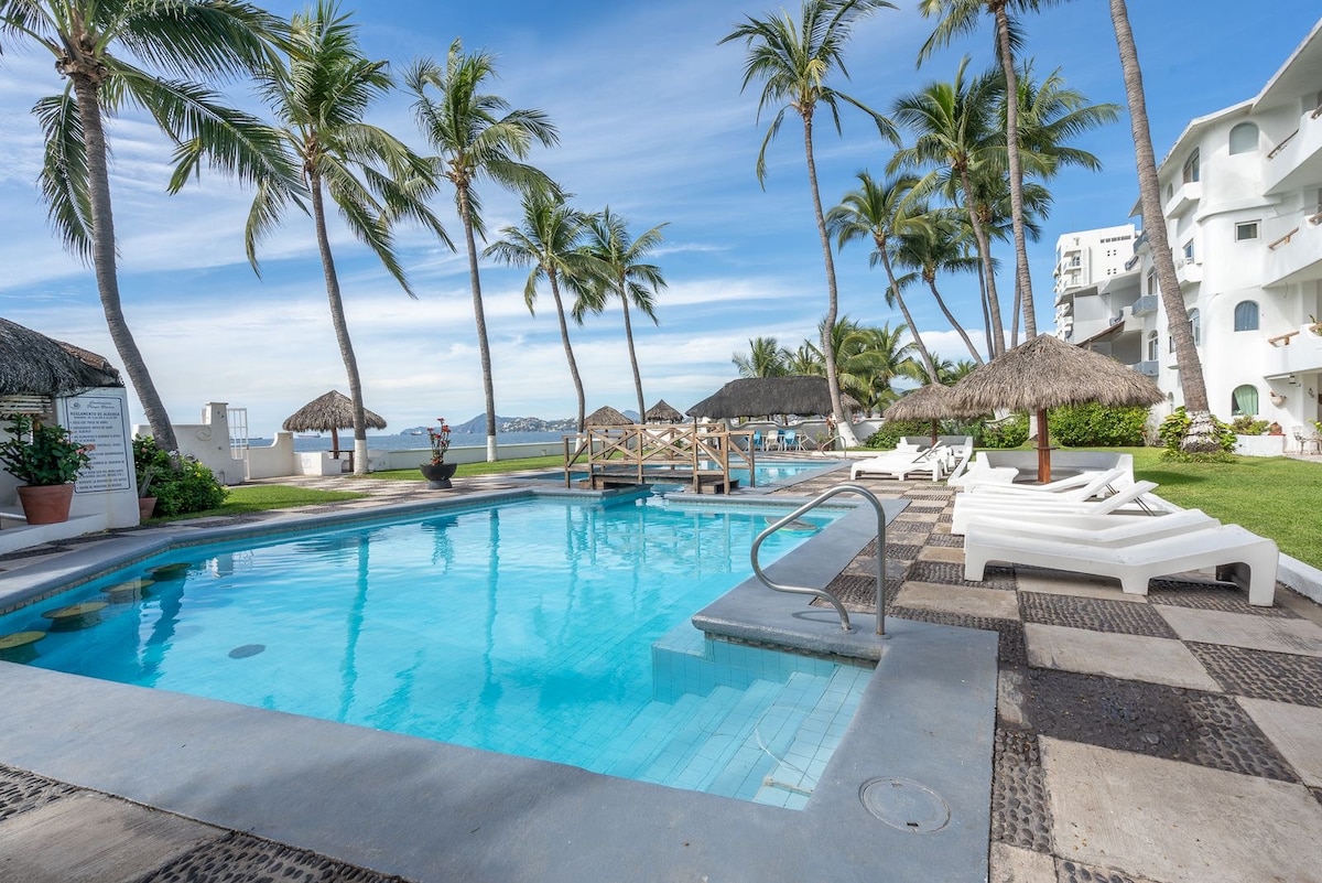The apartment is the ideal place to spend an unforgettable stay in Manzanillo. ✨ Just 5 minutes by car / 10 minutes walking to the beach. 🏝️ Located on the first floor facing the pool and the palapa. 🏖️ You have restaurants, bars, and supermarkets nearby within walking distance. Great location. 🍳🦐🦪🌮🍔🍕🍣 The common areas include a garden, palapa, pool, bathrooms, showers, and a play area. 🛝🏊🏻♀️🛟🙌🏻