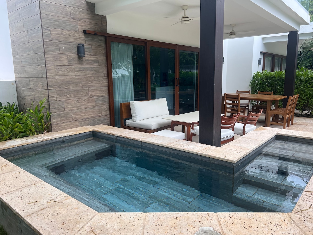 ¡Tu escapada perfecta te espera! A solo 250 m del mar, esta villa lo tiene todo: 4 habitaciones con A/C y baño privado (2 habitaciones con acceso directo a la piscina en el primer nivel y 2 habitaciones con balcón en el segundo nivel), piscina espectacular, cocina amplia, salas y comedores interior y exterior, cancha de vóley, 2 ranchos, churrasquera, parqueo, agua caliente e internet veloz. Ideal para relajarte con amigos o familia bajo el sol y la brisa del Pacífico.