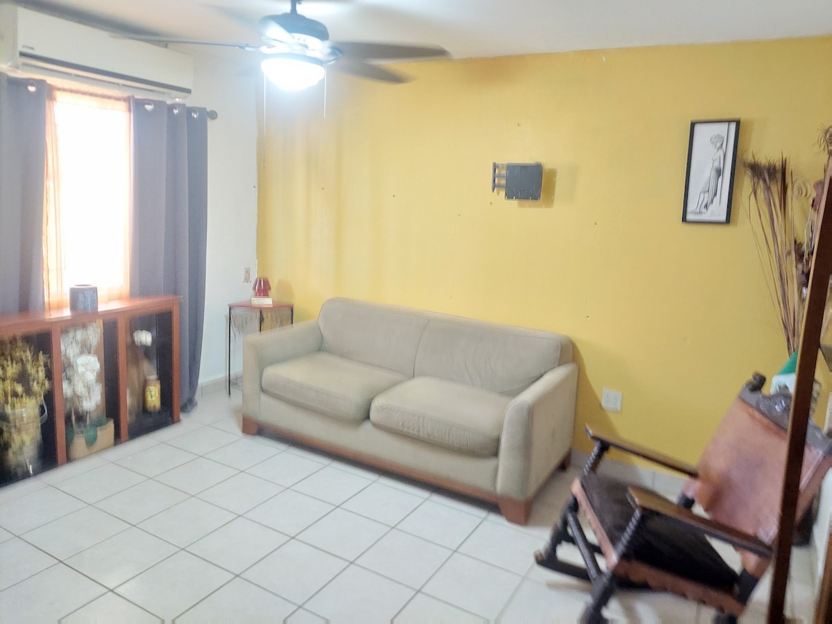 Experience San Felipe like a local in this Charming 2-bedroom house. Nestled in a beautiful and serene setting. 1 block to beach Each bedroom has a queen bed. 1 bathroom and 2 free parking places with amenities like AC, Heating, WiFi(75inch Smart tv, kitchen is small but is fully equiped microwave coffee maker blender toaster and all dishes silverware pots & pans the home is exceptionally clean partial ocean view. Allows children ages 9+.