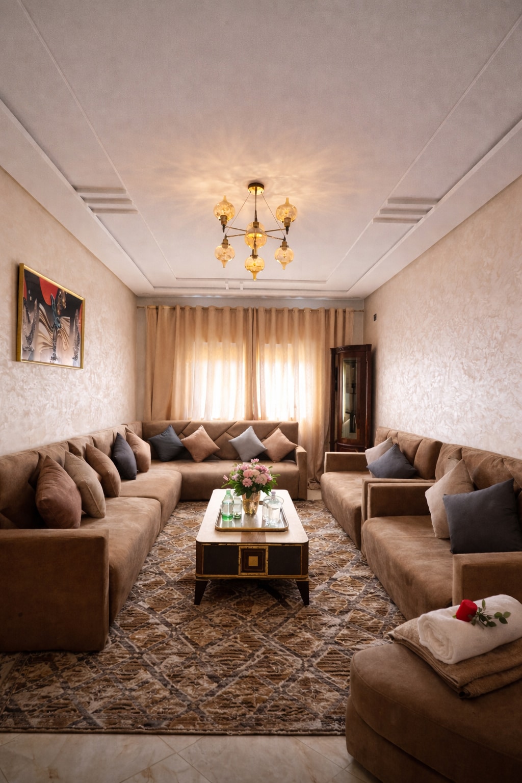 Bienvenue dans notre spacieux appartement haut de gamme de 3 chambres à Meknès. Idéal pour familles et groupes, il offre un grand salon marocain élégant, une cuisine moderne entièrement équipée, 2 salles de bain et un balcon. Confort, calme et propreté garantis. Parfaitement situé pour découvrir Fès, Ifrane et la célèbre forêt des Cèdres. Nous proposons aussi des services personnalisés et des conseils locaux pour rendre votre séjour unique.