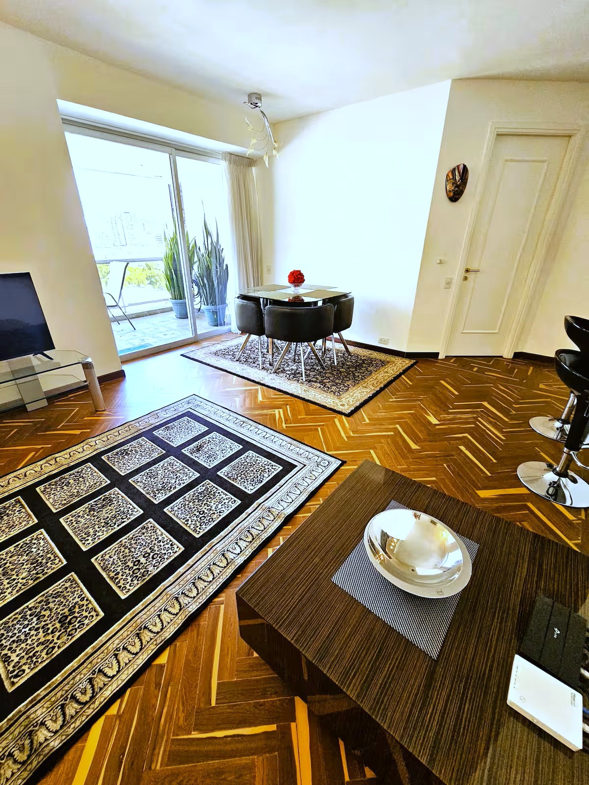 56 Mts suite with excellent spaces and With Pleasant Balcony - Kitchen dining room - Room with King Bed - Sofa Bed ( 1 Huesped More ) - Parking with Surveillance - Close to: Supermarket, Tub, Bakery, Gym, Restaurants , Hairdresser - Only 500 Mts Centro Médico Docente La Trinidad - Ideal for up to 3 adults