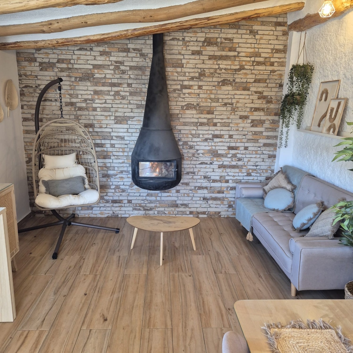 Cueva Bisbita offers a unique experience, combining traditional cave architecture with modern, minimalist interior design. The cave has a double room equipped with a high-quality mattress from Emma, ensuring a restful sleep while you are surrounded by the tranquility of the natural setting. The living room, adorned with a cozy fireplace and an exposed Silestone kitchen, offers all the comforts of home in a spectacular setting.