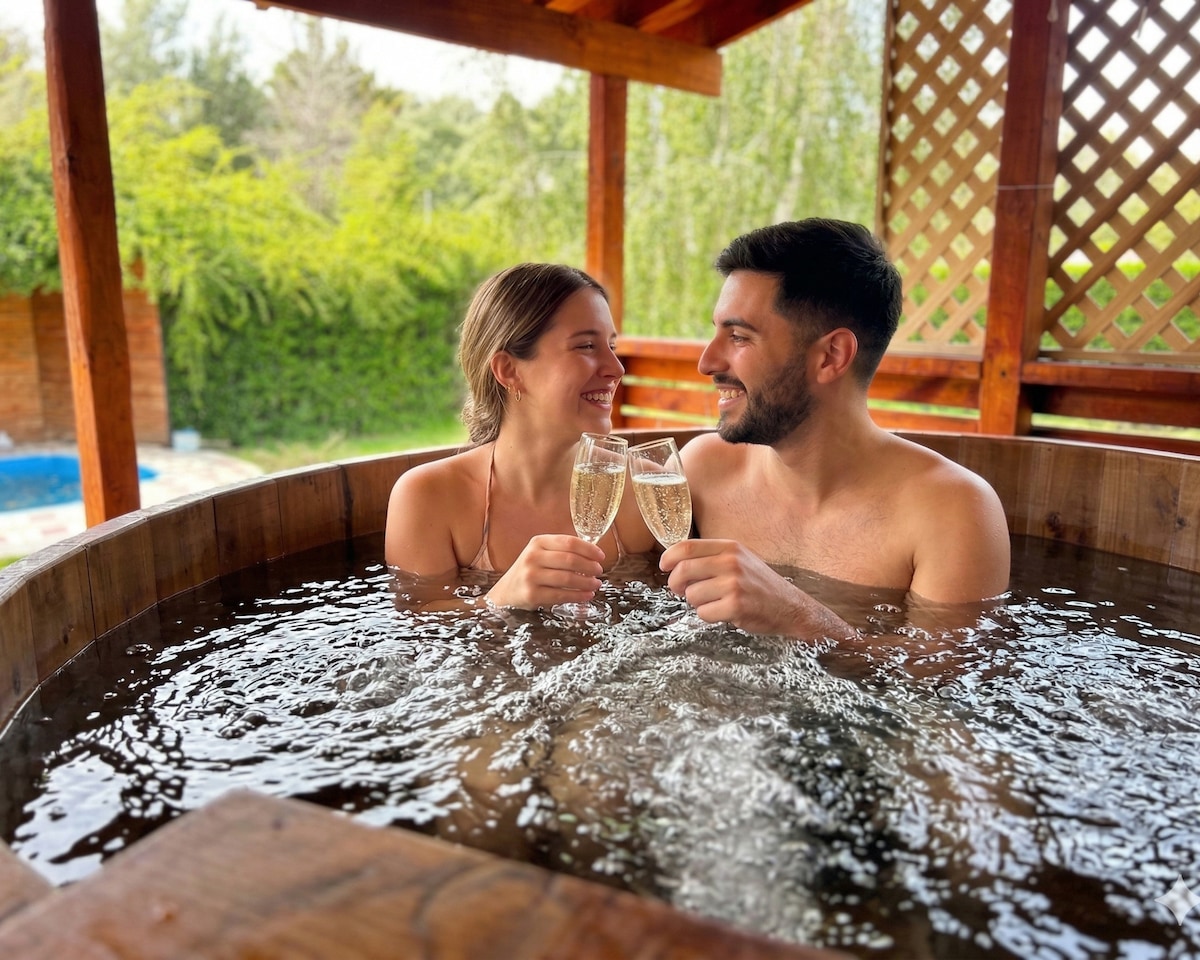 Small rustic cabin, one room, WITHOUT kitchen, with grill on the terrace. Inserted between large trees, meters from the Maipo river with exclusive access to the cabin. It has a terrace and private parking. Ideal accommodation for couples and adventurers, hot water jar on the terrace, to relax with the sound of the river under a starry sky. The tinaja is for private use and without schedules.