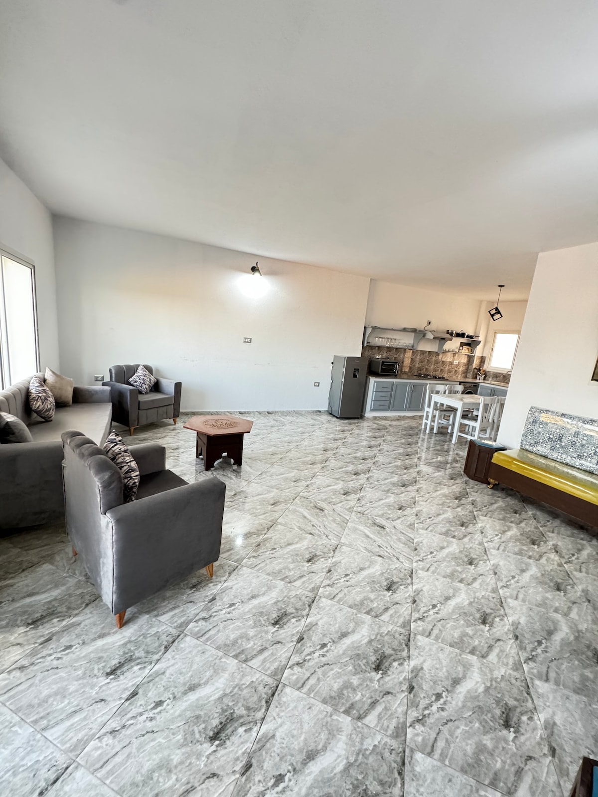 Spacious 2-level beachview villa in Chatt Ezzhour. 3 bedrooms + suite, 2 bathrooms, full kitchen, AC in all rooms. Multiple terraces with stunning beach views, exclusive rooftop access for stargazing. Walking distance to Tunisia's most beautiful beach. Perfect family retreat with modern amenities and authentic coastal charm. Unforgettable Mediterranean experience awaits!