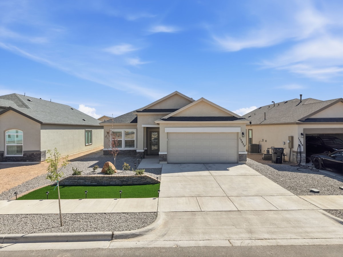 Relax with the whole family at this peaceful place to stay. Quite street good for a walk. Close to downtown, hospitals, shopping and dining. 11 minutes to UTEP. 15 minutes to downtown and border crossing. 40 minutes to Las Cruces NM and New Mexico State. Two car garage. 3 bedrooms with sleeper sofa. Crib, highchair and folding cot for the little ones, stroller included. Comfortably should sleep six adults. Other amenities are included. Longer stays are more than welcome in our pet friendly home.