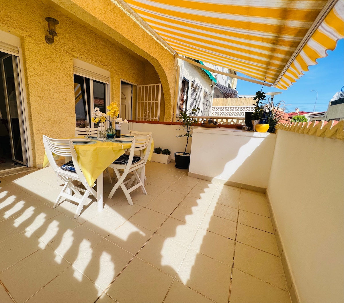 Beautiful townhouse with barbecue on the terrace and indoor fireplace. In front of the Pinada de Guardamar del Segura, in the Buenavista development. The house has one bedroom, ideal for a couple. The views are of the pine forest of Guardamar and crossing the pine forest it ends at the beach. Access to the beach is via a beautiful raised wooden path that crosses the pine forest (800 meters). Very close to the Santa Pola lighthouse (by car) and the town of Guardamar (3 km). Parking at the door.