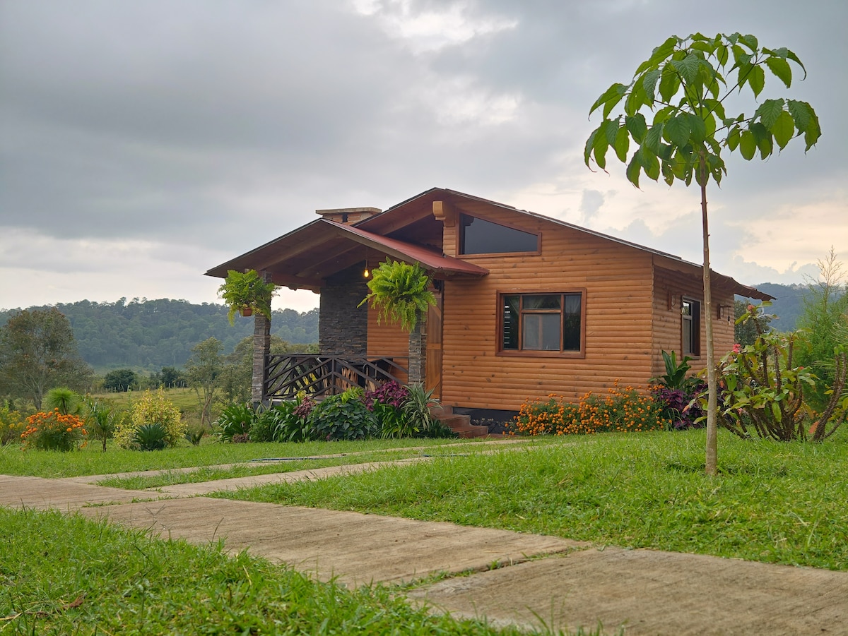Relax in this quiet and elegant space, Enjoy the charming surroundings of this romantic Prieta Cabin. It is located 5 km from the main square, it is surrounded by huge pine trees, it has luxury finishes, equipped kitchen, Jacuzzi, Terrace with panoramic view, TV with Dish system. Everything you need to spend a pleasant night with your partner in nature.