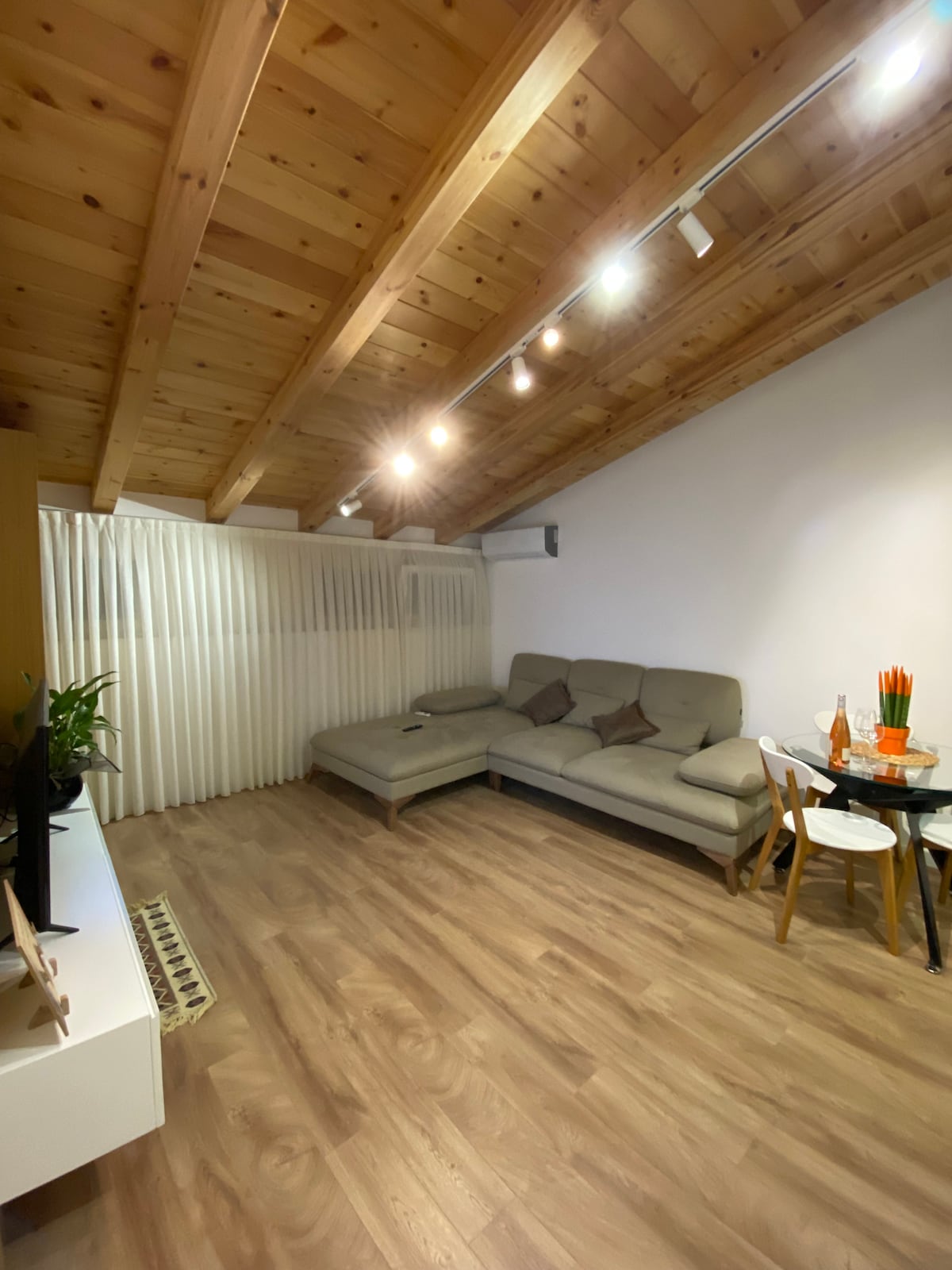 Welcome to our cozy retreat in Tirana! This charming 40 m² loft offers a unique two-level layout: a spacious fully equipped kitchen on the lower level (ceiling height: 1.95 m), and a comfortable sleeping area upstairs (ceiling height: 1.65 m), providing a sense of privacy and comfort. One of the highlights of your stay is the complimentary use of two bicycles, perfect for exploring the city like a local.