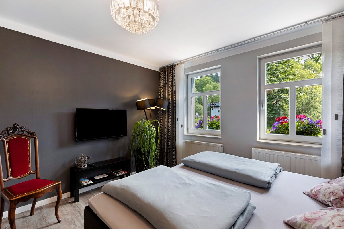 Nostalgia meets modernity. A hundred-year-old, detached house renovated and furnished with attention to detail. With sauna, fireplace, library, garden, sun balcony and technically up to date, nothing is missing for a perfect vacation, whether as a family or in romantic togetherness. The beautiful wooden floors, the large windows, the kitchen-living room and the distinctive bedrooms in different styles of the 20th century, make the stay an experience.