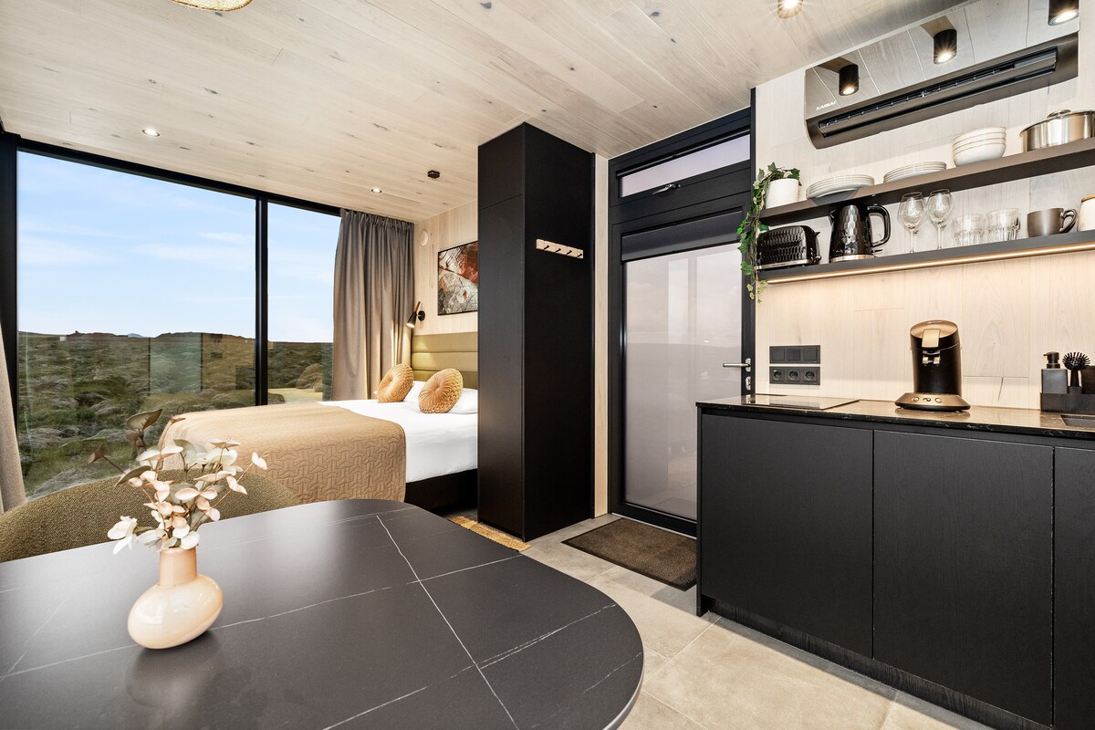 Experience unparalleled luxury and comfort at a black sand beach with beautiful views all around. There is a fully equipped kitchen and bathroom in our shared service house on the property, about 200m from the dome, as well as toilet cabins in a short walking distance from the dome.