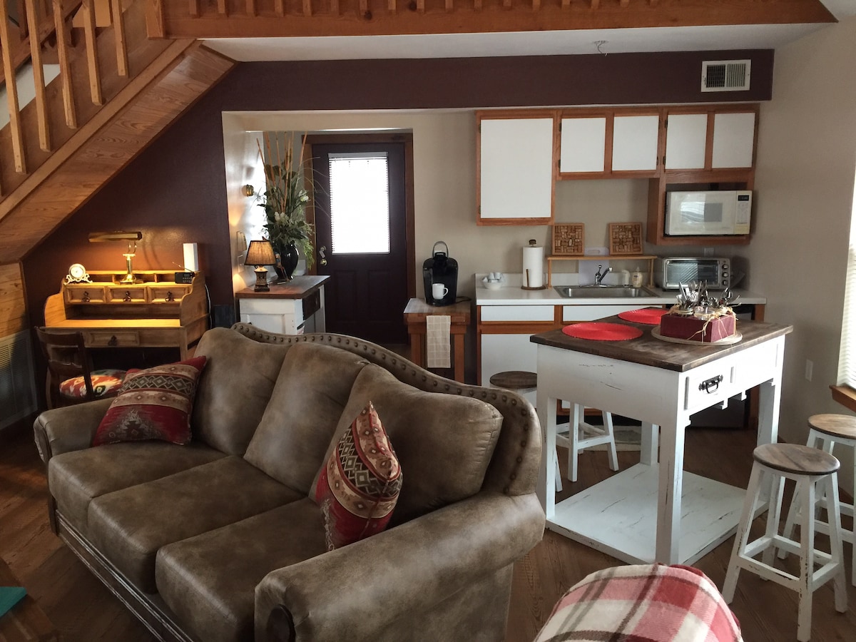 Upgrades: -as of July 2024 1. Water softener system -Jan 2024. 2. Laundry services available for a fee ($3 per load to wash, $3 per load to dry) 3. Tankless water heater added 4. New paint and renovation of interior images. A tiny quiet cove of delight with a private entrance and self check in/out process access. Cozy, quaint, and quiet. Awaken refreshed after sleeping comfortably on a Serta Perfect Sleeper mattress. No need to meet with host. Let yourself in.