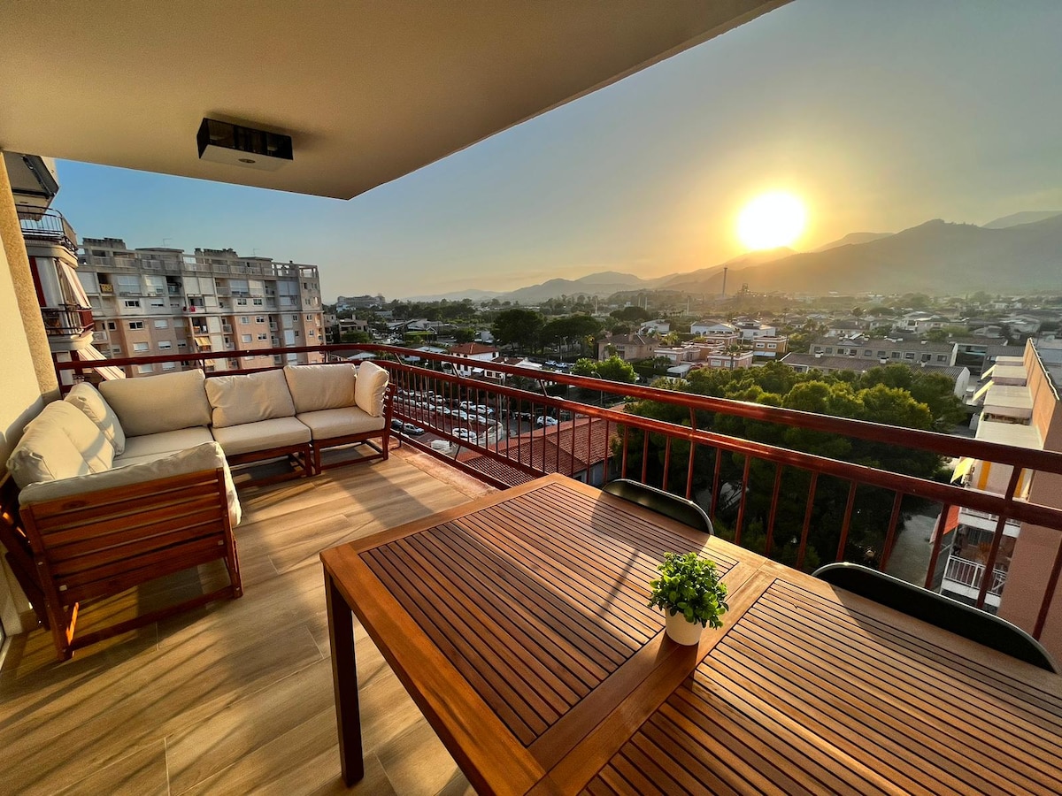 A spacious, fully-equipped apartment, renovated and with brand new furniture, 150 meters from the beach. You can enjoy ocean and mountain views from its large terrace. Perfect for families or groups of friends. Close to restaurants, supermarkets, pharmacy, cafes and pubs, all on the beachfront. Very close to the bus stop to go to Benicassim village, 3 km away. Come and enjoy the sea, the mountains and all kinds of activities. We look forward to seeing you!