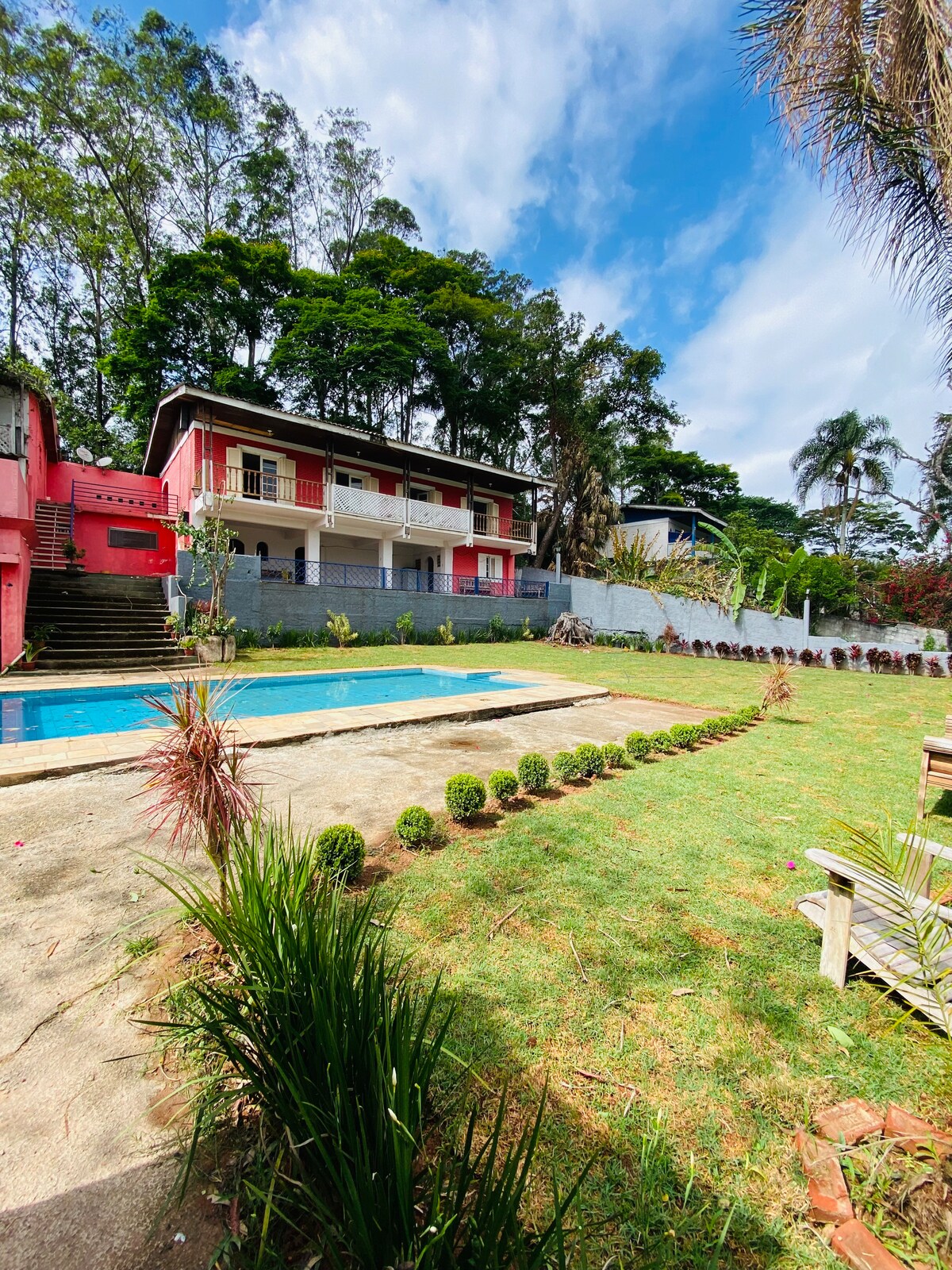 A haven in paradise! The most complete in the region!!! 33,000 m² of nature, Swiss-style one-story house with fireplace, waterfall, pool table, outdoor fire pit, fenced soccer field, lawn and lighting, mini golf, 12x6 swimming pool with Jacuzzi, complete playground and dollhouse, board games, darts. Internet, 4 km from downtown Embu, access to market, drugstore and bakery. Wake up to the sound of our waterfall and enjoy a real rest!! Maximum 25 people for overnight stays.