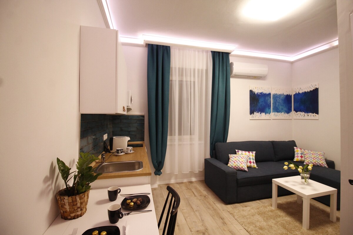 Enjoy a stylish experience at this centrally-located place. In the heart of Győr- Downtown, in the pedestrian street, we have created this modern studio apartment. A unique experience to spend a few days in the bustle of the city center, among the old Baroque buildings. We provide free parking for our guests in a nearby underground garage. The apartment is fully equipped, quiet. It is ideal for two people for a longer stay, and for 3-4 people for one or two nights. Good wifi, smart tv and Netflix.