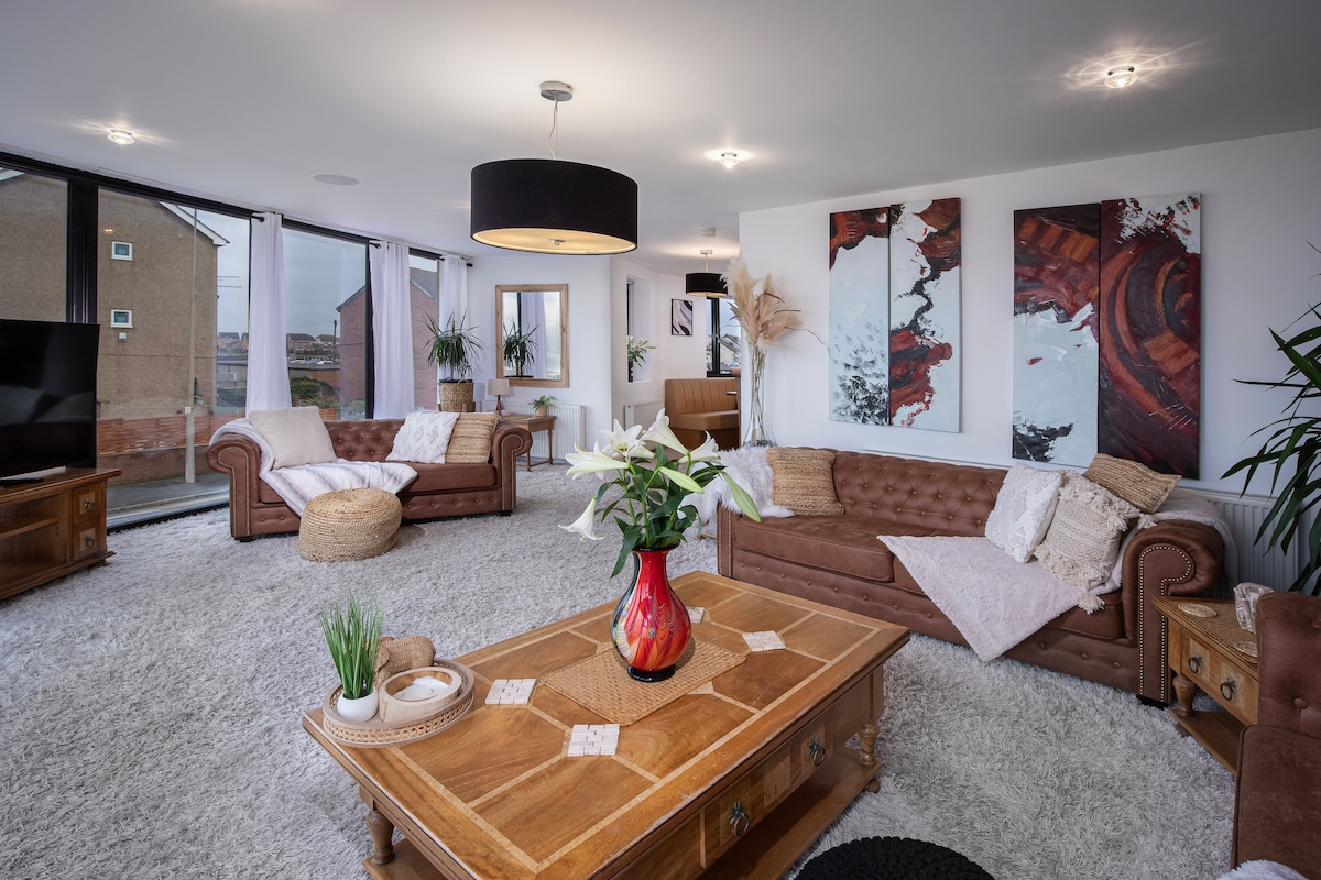 *Featured Airbnbs Top 10 most wish-listed homes in the UK! *Used by the cast/crew of Star Wars series 'Andor' whilst filming *5 minute walk to town centre, shops, restaurants bars! *10 minute drive to Blackpool North Train Station, 20 minutes to Blackpool Pleasure Beach. *Free parking for 2 cars *Beachfront/Seaview! * Roof top terrace, Hot tub/Cinema Room/ *Bar / Sun lounge with stunning sunset views, and Balconys.