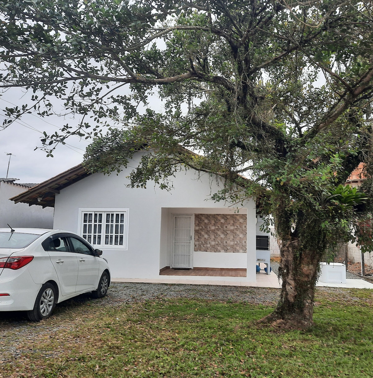 The Casa da Dona Marcia for groups up to 16 people. 50m from the beach, in Prainha in São Francisco do Sul. 5 air-conditioned rooms, 3 in the main house (2 on the upper floor and 1 on the lower floor) and 2 in the building. It has 3 bathrooms in total. Internet WiFi. Netflix, Parking for 3 cars (queued). House clean and with good mattresses. Located at Rua do Bar do Banana.