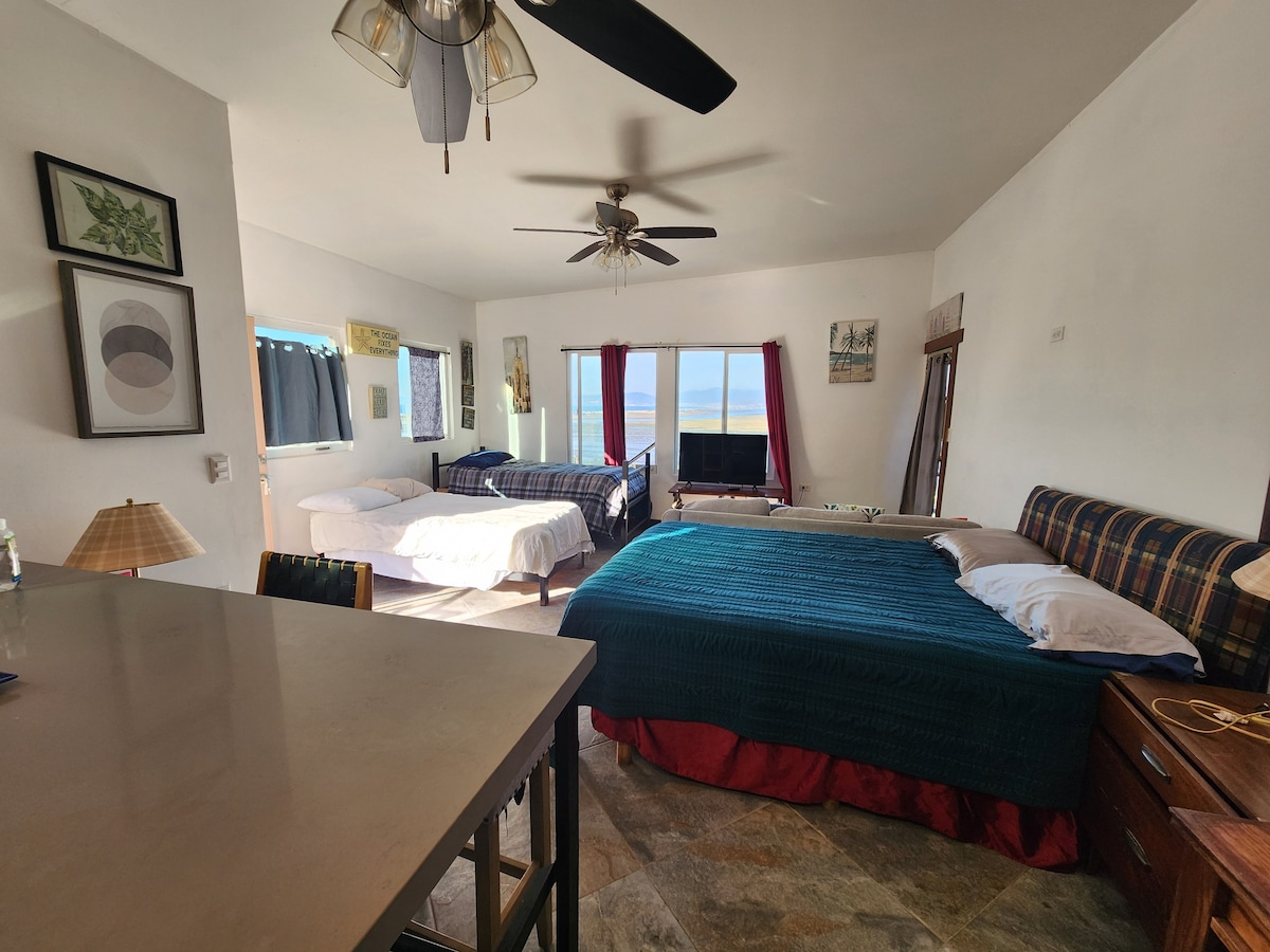 Wake up to bay views in this cozy loft, spend your day exploring or relaxing, and return to golden sunsets from your private balcony — a highlight of every stay. A full wall of floor-to-roof windows fills the space with natural light and sweeping views. Peaceful and well-located: 5 min to 🛍️ Calle Primera, 15 min to 🏖️ Playa Hermosa, and near the 🍷 Valle de Guadalupe wine route. Perfect for a romantic escape or inspiring retreat.
