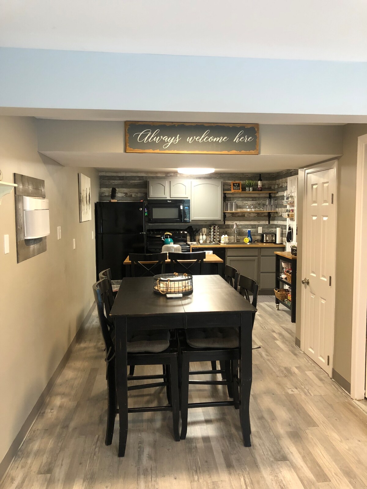 This is an Apartment /Mother in law suite that is connected to my home. You have a separate Front and Back door. One bedroom, Full kitchen, queen bed, and queen sofa bed in the livingroom. Park in the driveway next to my van You might hear the sounds of kids playing next door. Outdoor and Sun porch are shared space that includes a huge in-ground pool, beautiful screened in sun porch, outdoor dining, fire pit, hot tub, and trampoline. The pool closes September 19th will re-open next Summer.