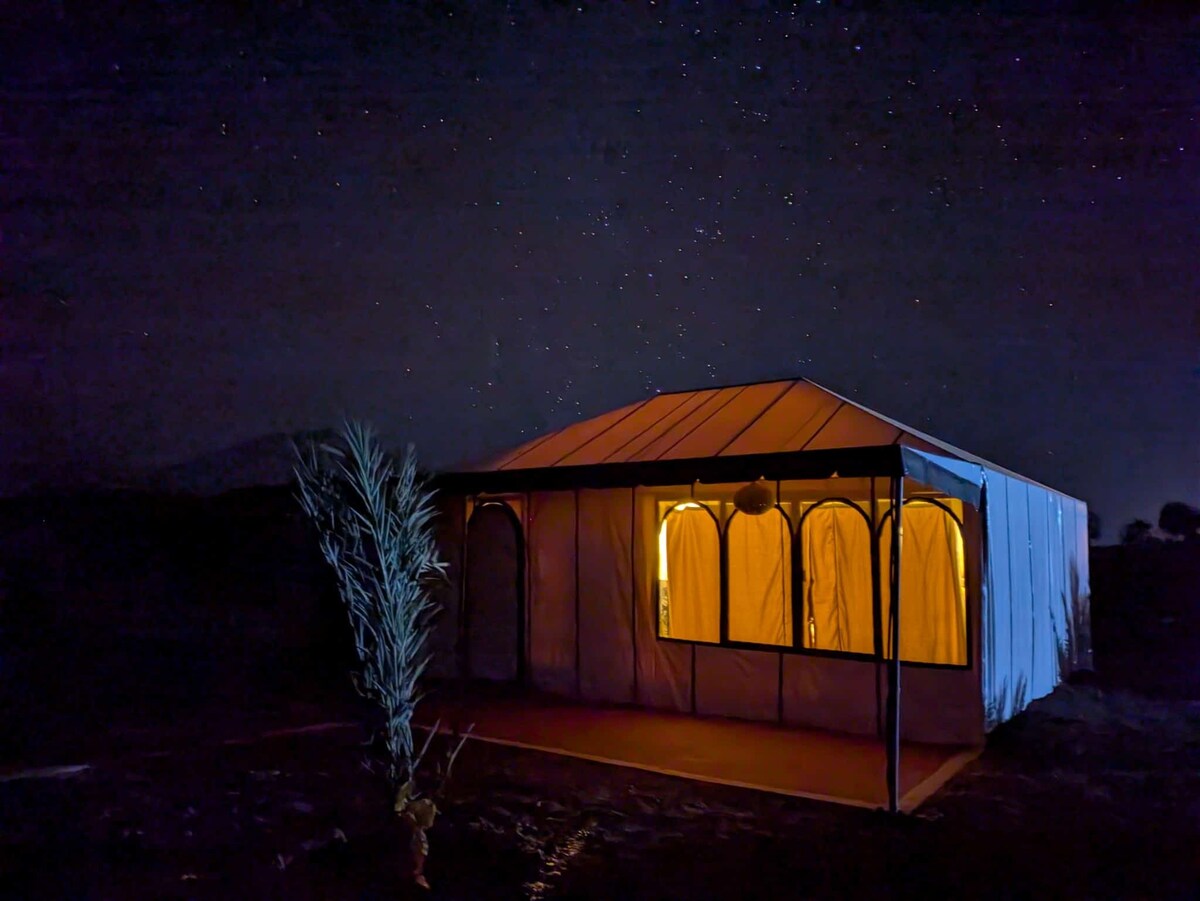 our camp is in (Hassilabied) dunes of Erg chebbi desert, when you arrive to Hassilabied) you will park your car at our house we have privat parking and we have house for guest where they can have tea for hospitality. and perpare back bags for the night in the desert camp, you will have 1hour camel ride to wach sunset over sand dunes then get down to the camp you will have dinner and camp fire berber music. but Camel ride and dinner is not incueded in price that you find in Airbnb