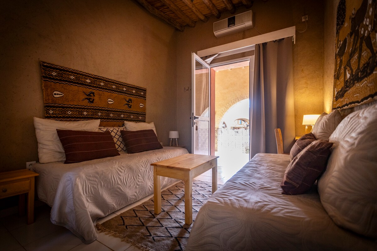 After the Airbnb success of The Dune House, we have added a separate studio style room ! Beautifully rustic, with views from every window and a private balcony. There is nowhere like it. For a completely unique stay and authentic desert hospitality, we are proud to welcome you to our favourite room in the moroccan desert. With access to the main Dune House terrace, and pool of our hotel 200m away, this room offers a separate entrance to the house