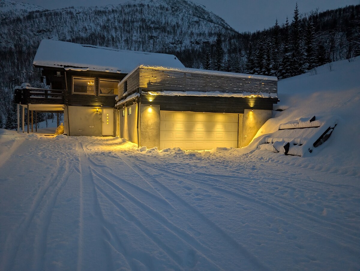 Spectacular new build house (2018) in a lovely, quiet area with a beautiful view to the fjord/sea, mountains and forest in Kvaløya /Tromsø. You can watch the beautiful northern light / aurora borealis from the huge window (10 sqm), sitting in the living room with a cup of tea or coffee in your hand:-) This is a perfect place for tourists who wants to see the northern light, whales in the fjord at winter, hiking/ skiing in the mountains or everything else you want in this lovely city.