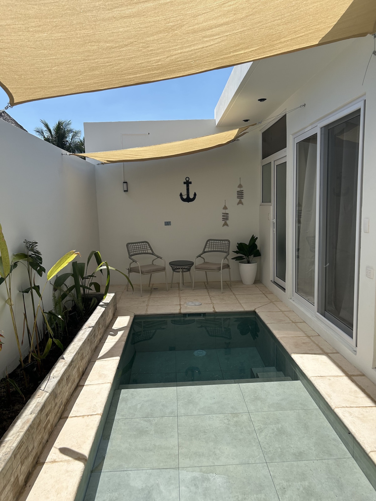 Slow down and sink into beach life at the Solana Deluxe Casita. Step outside to a sparkling 15-meter pool, shared with a handful of other casitas, perfect for a morning swim or sunset dip. Inside, relax in a king-size bed with air conditioning and high-speed Starlink WiFi. The casita also features a spacious upstairs living area, a fully equipped kitchen, and a private outdoor shower under the sky. It's everything you need for a peaceful, rejuvenating beach escape.